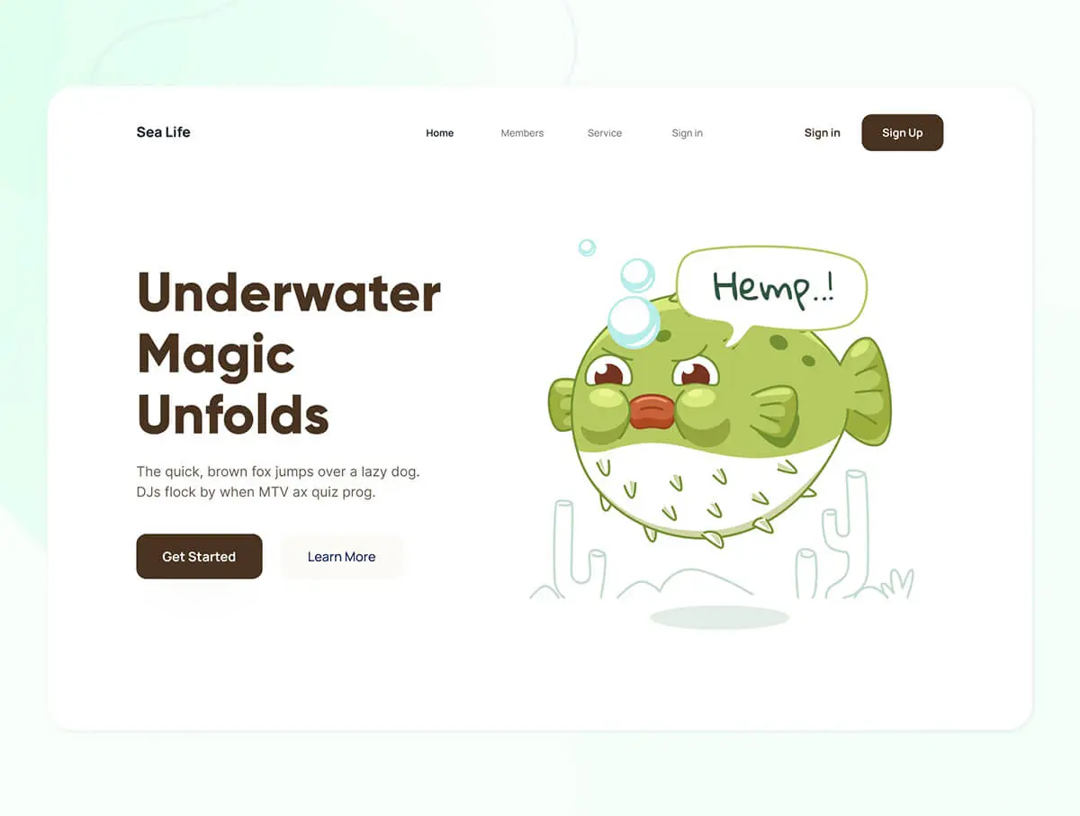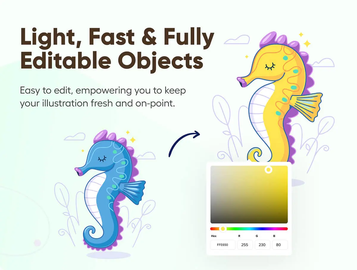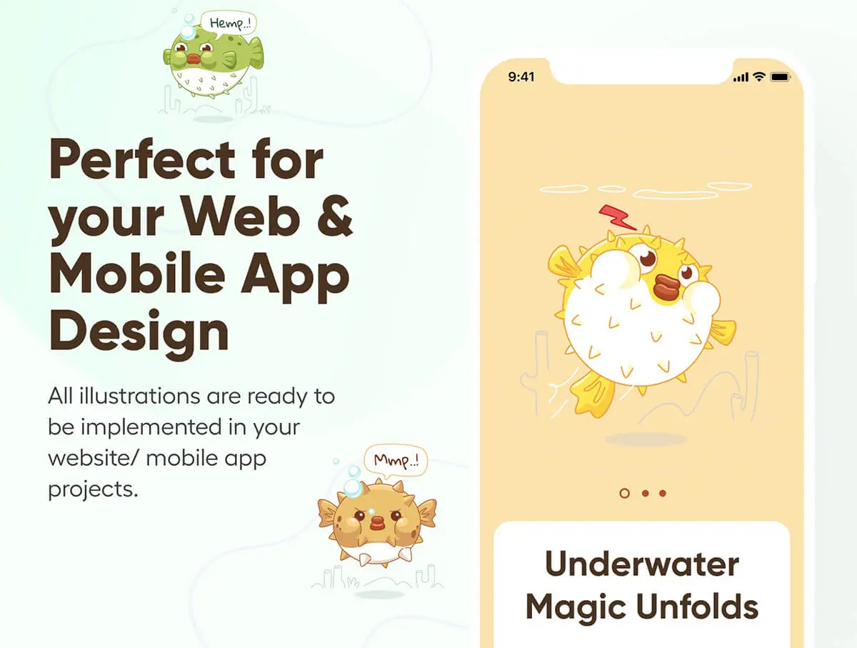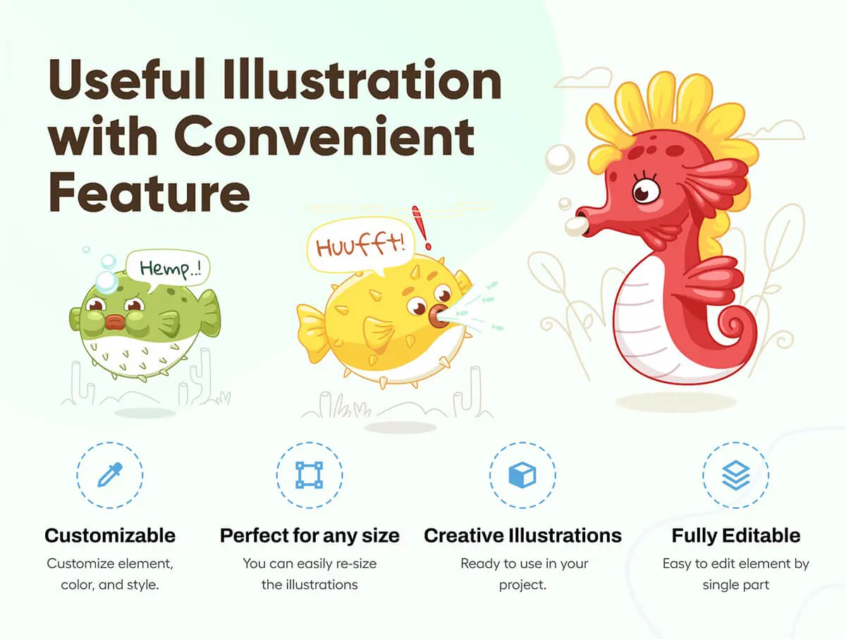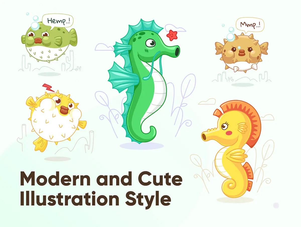Oceany – Seahorse and Puffer Fish Illustration 卡通海马河豚海底动物插图插画图标webp免抠图片素材