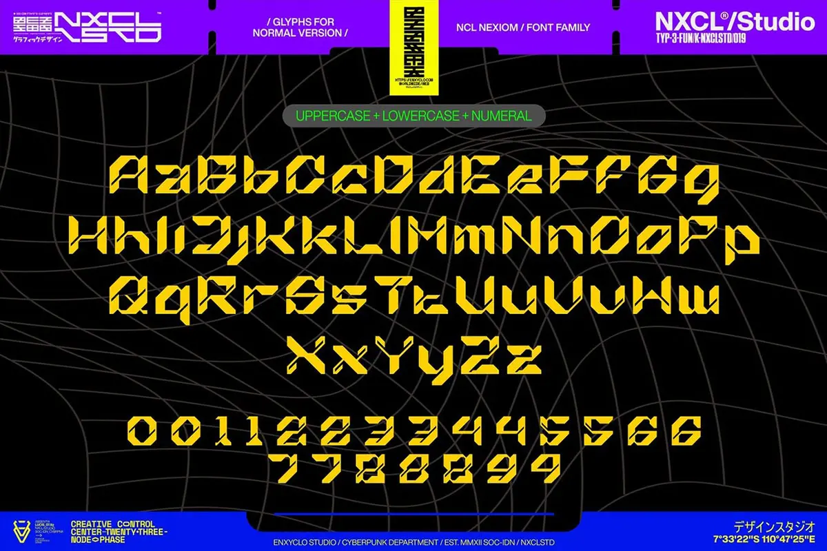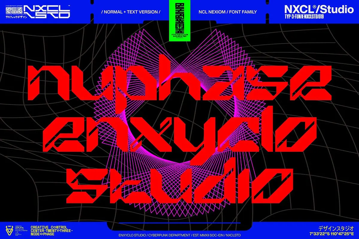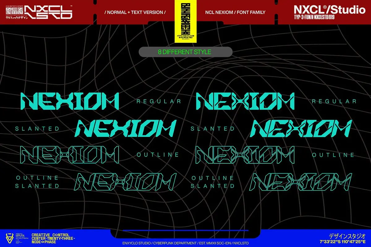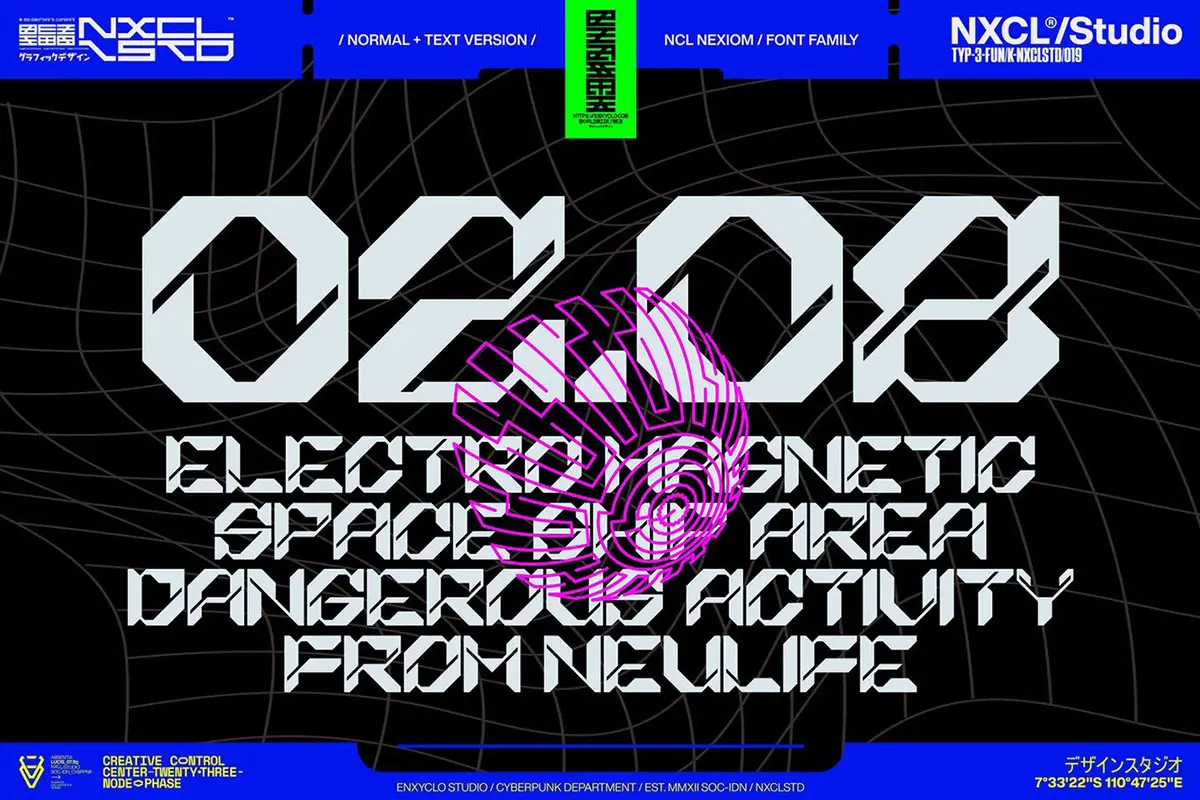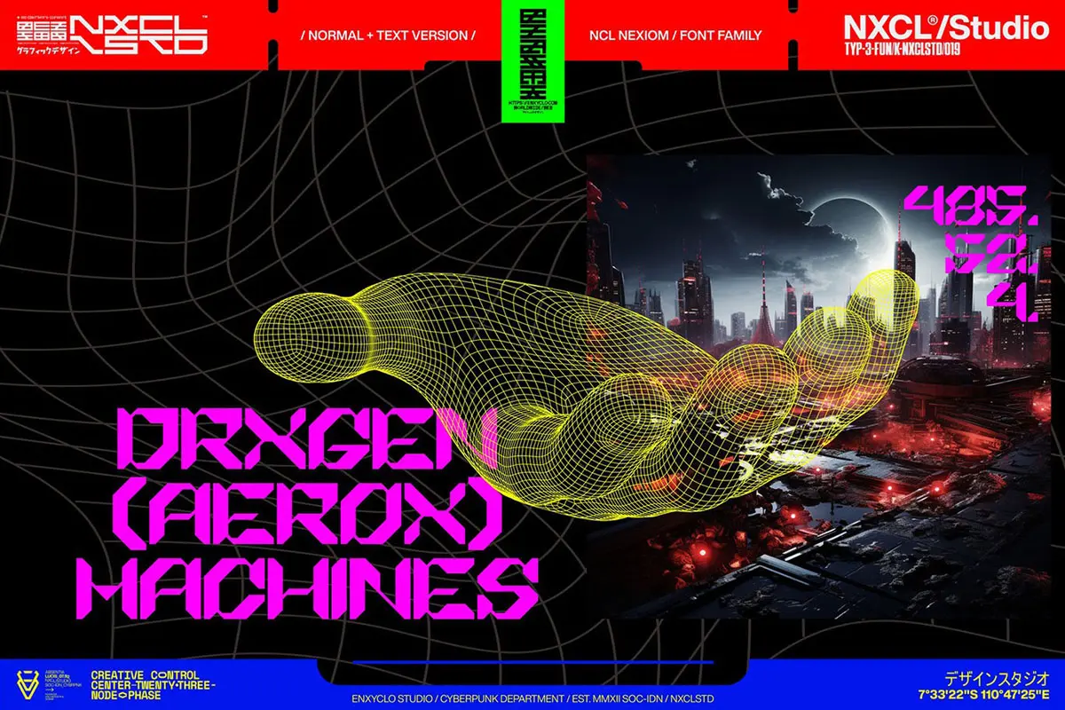 NCL Nexiom Font Family 潮流时尚工业风机能科技赛博朋克海报标题装饰英文字体