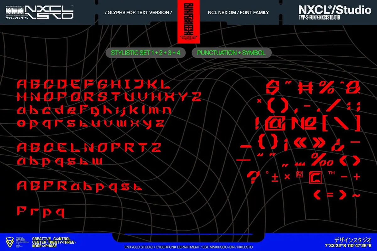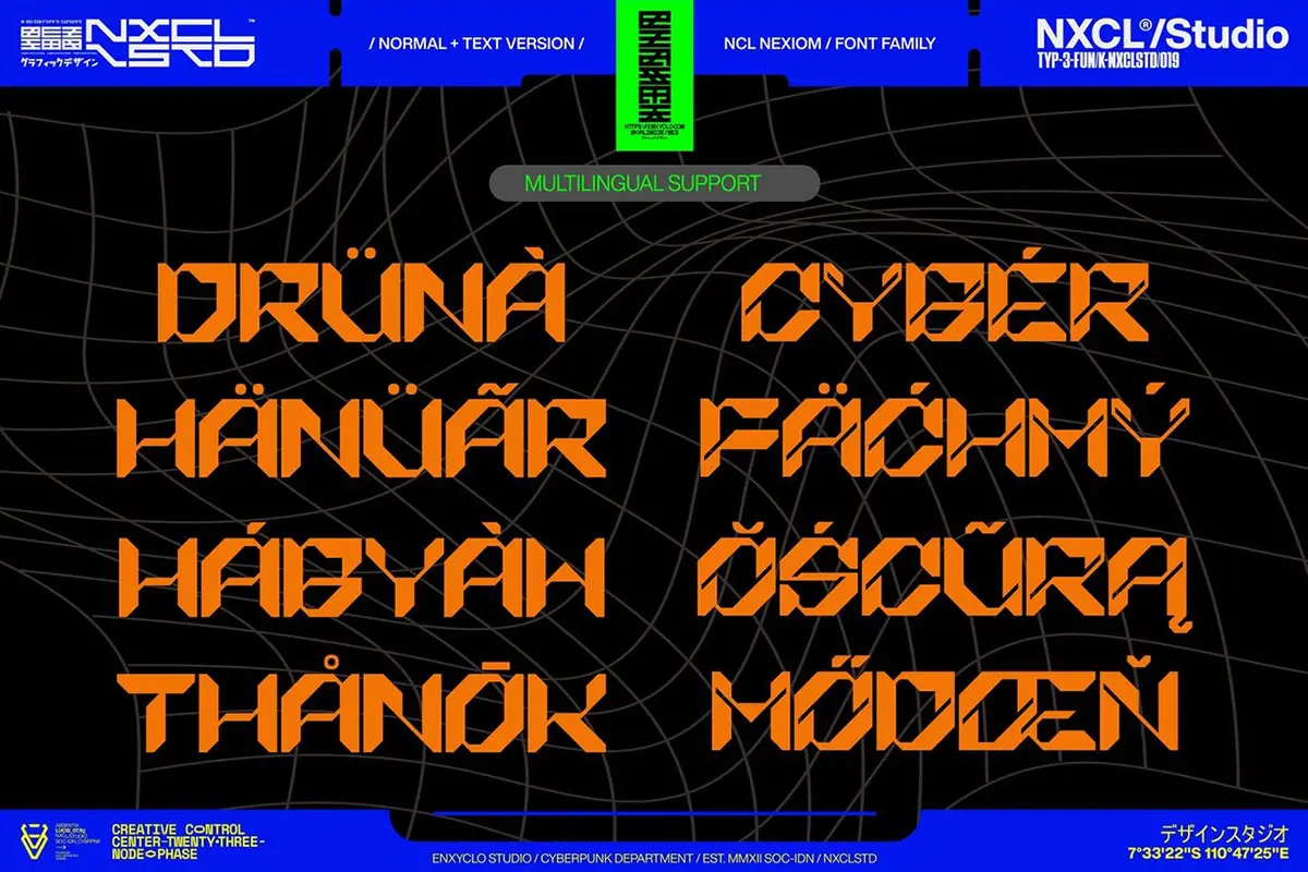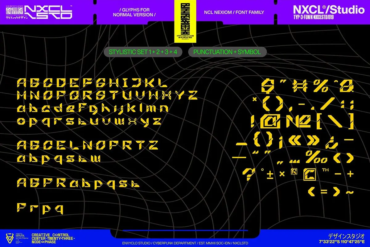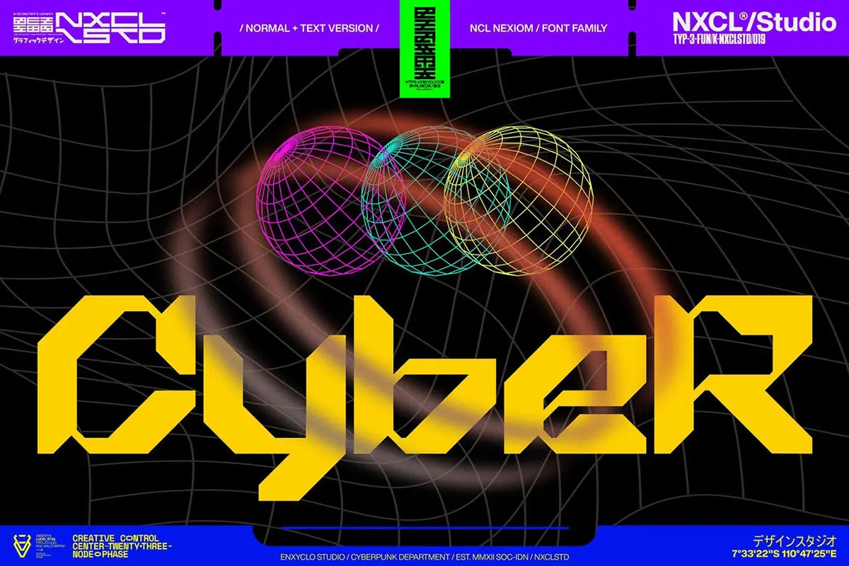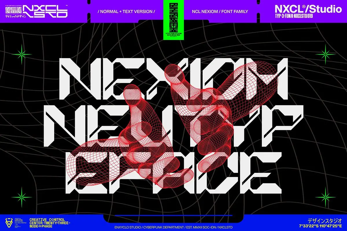 NCL Nexiom Font Family 潮流时尚工业风机能科技赛博朋克海报标题装饰英文字体