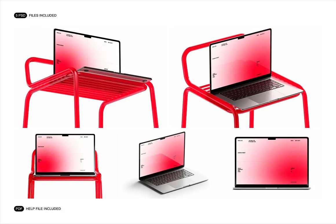 MacBook Air Mockup Set 5款工业风Macbook苹果笔记本电脑ui设计作品展示效果图ps样机素材