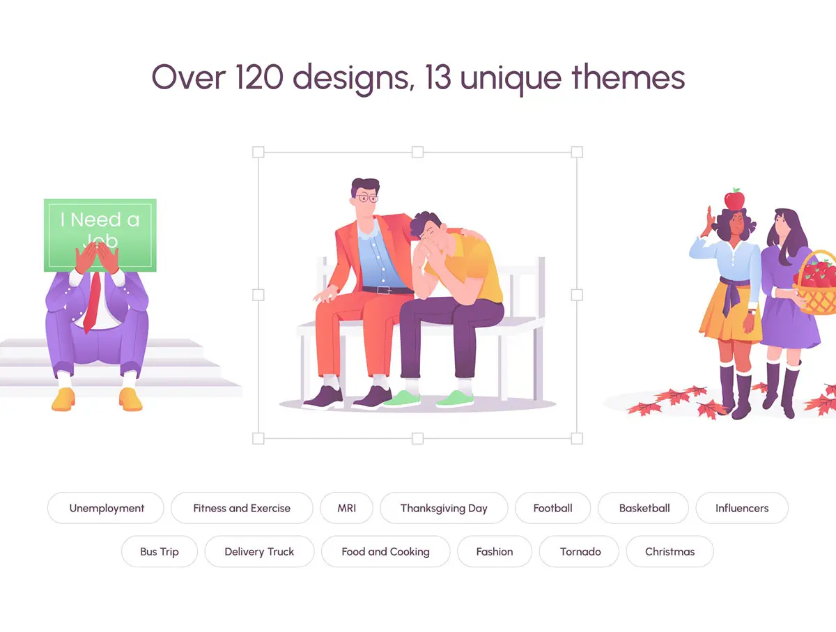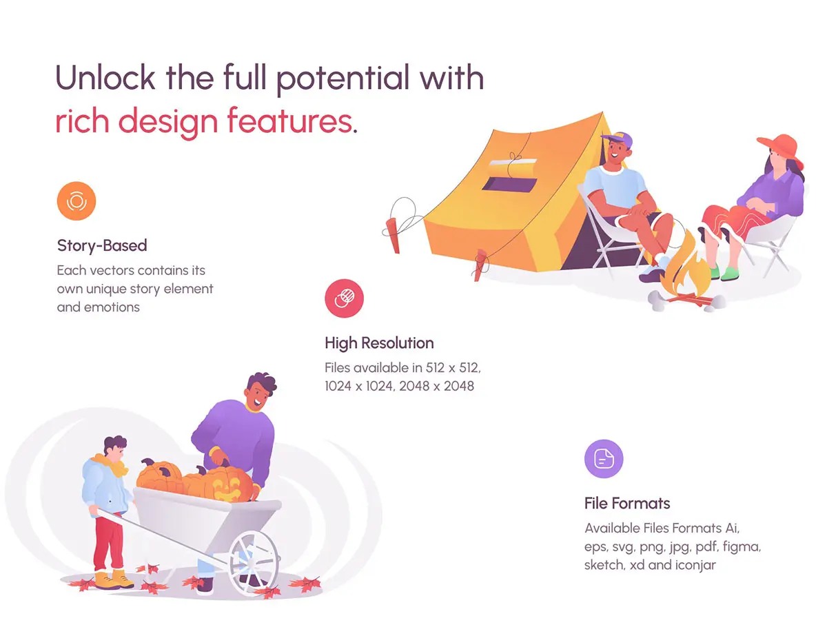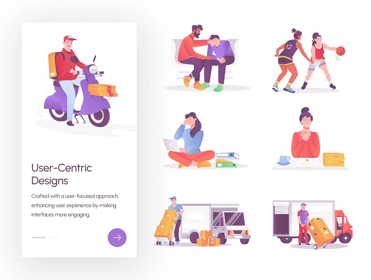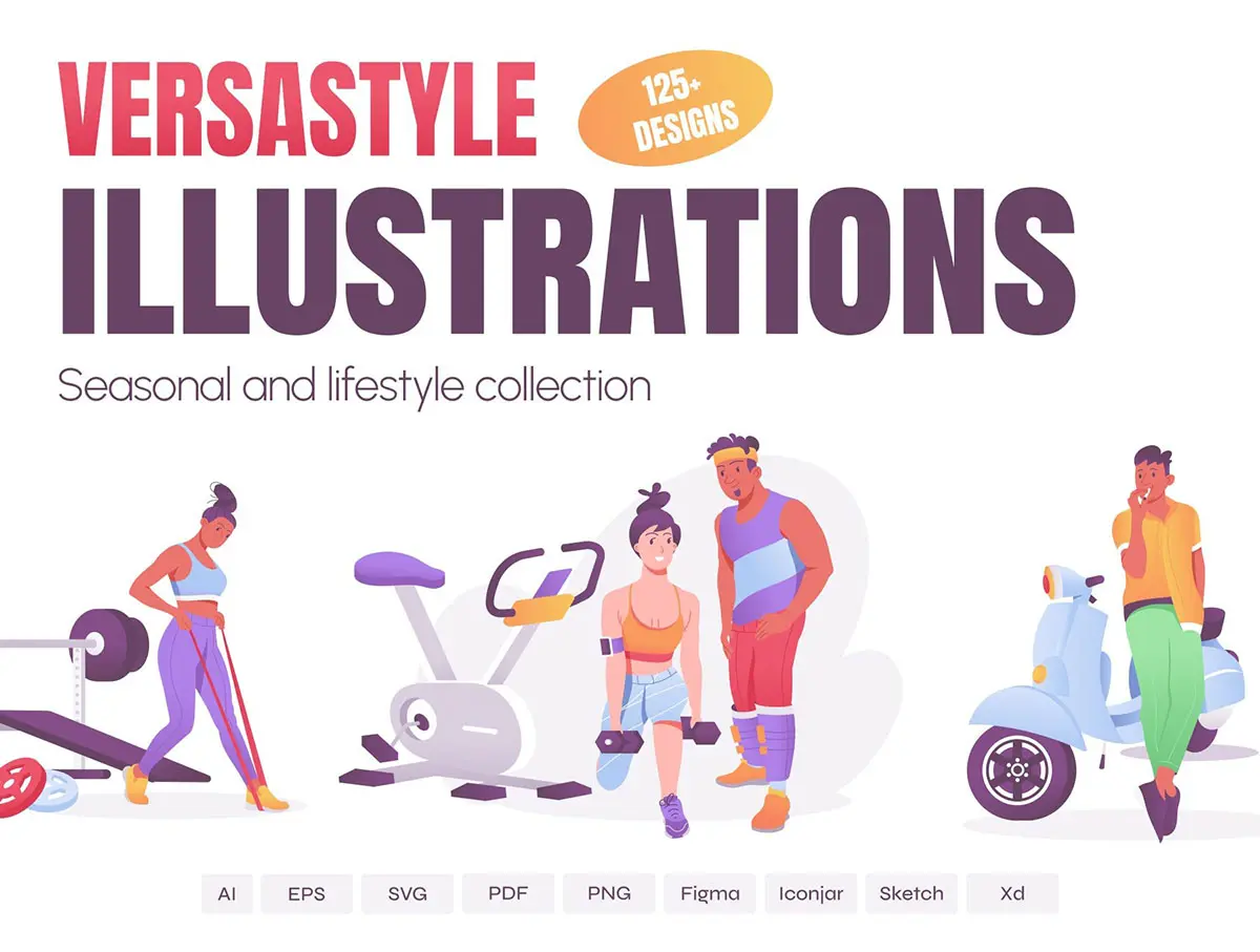Flat Versastyle Illustrations 138幅体育比赛露营探险节日庆祝日常烹饪快递运输多功能插图插画设计素材