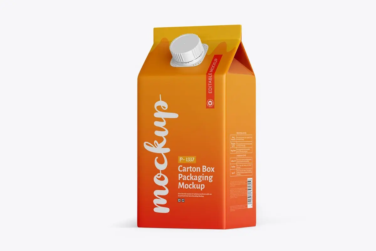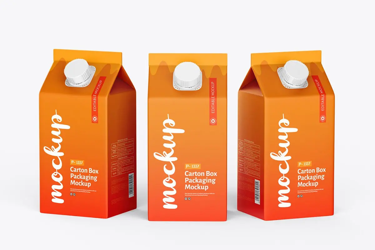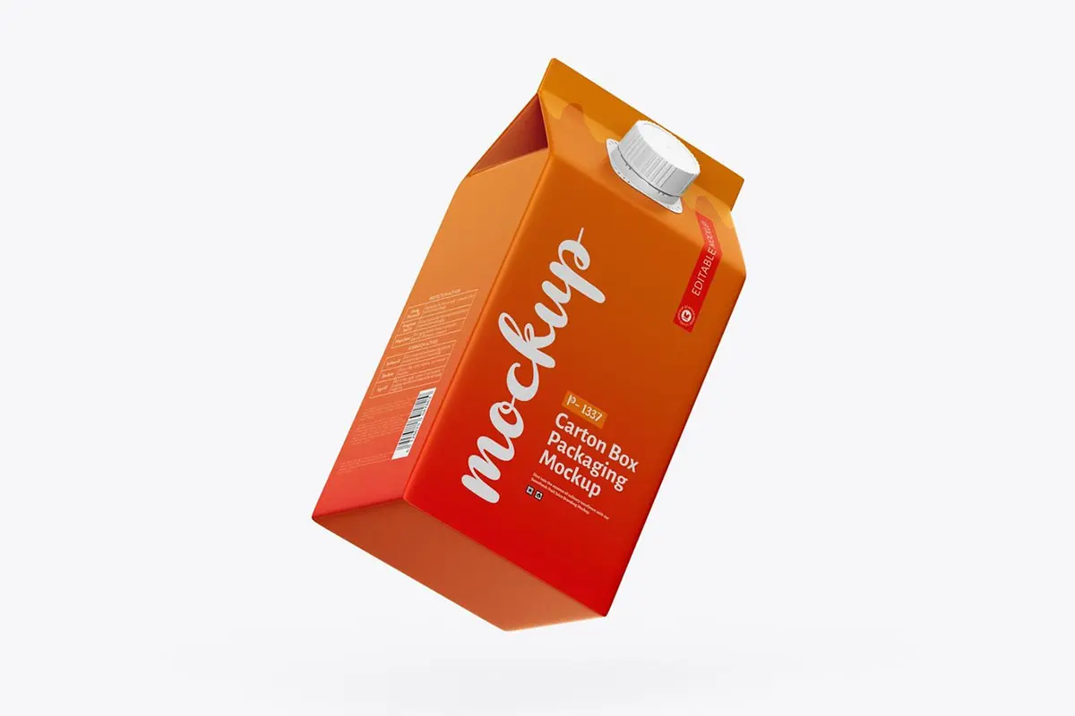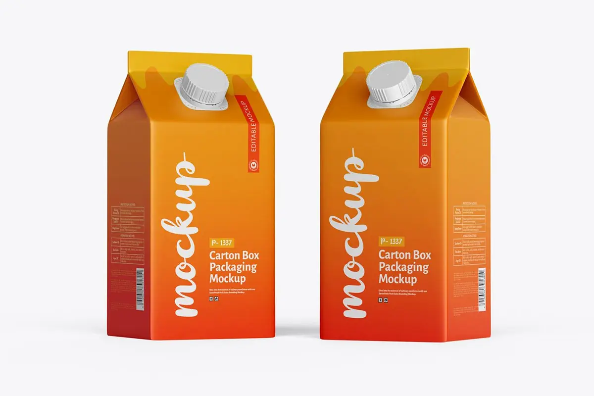 Juice Carton Container Mockup 6款果汁饮料牛奶包装盒模型品牌logo标识设计贴图ps样机素材