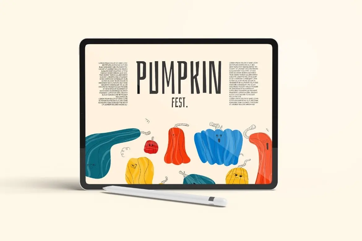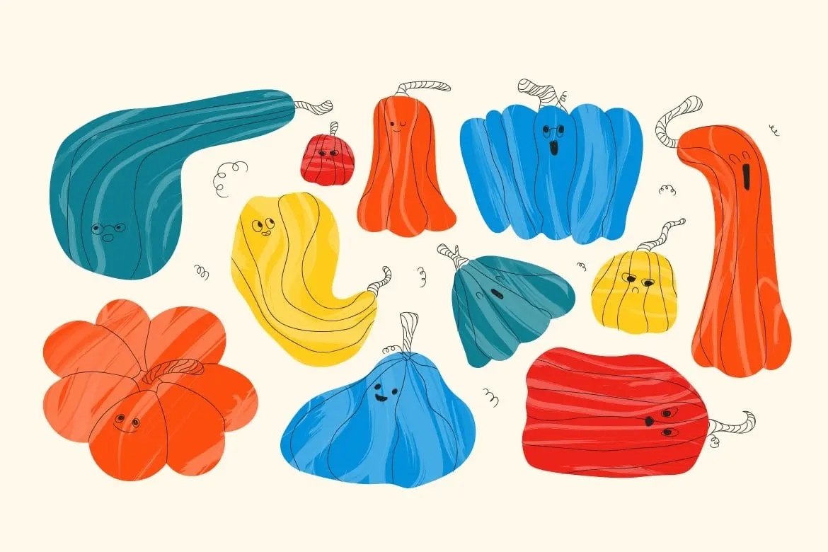 White Handdrawn Pumpkin Illustration Set 手绘南瓜卡通拟人形象剪切画插图插画Ai矢量设计素材