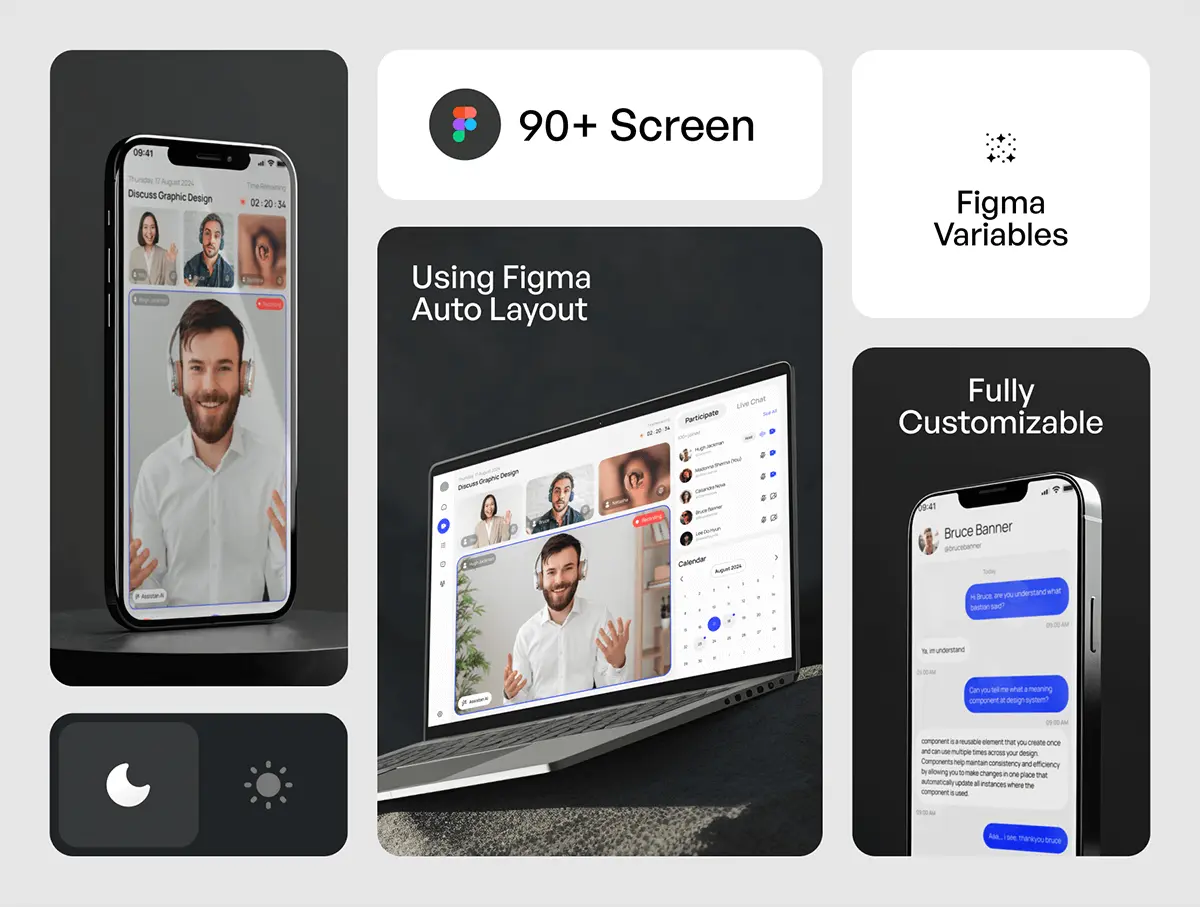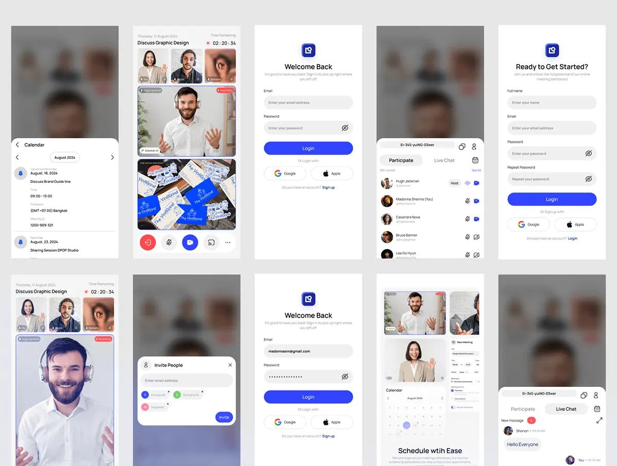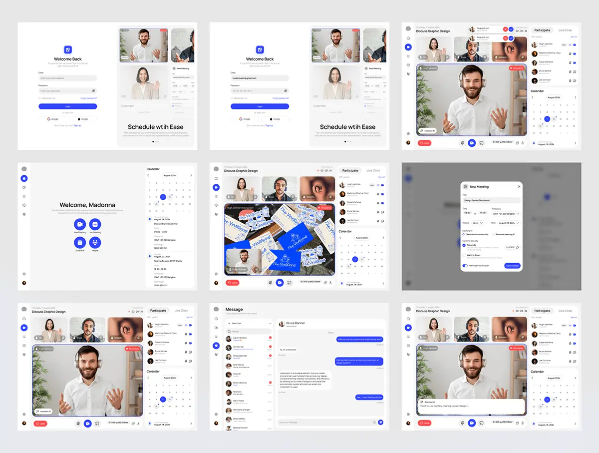 MeetOn – Video Conference Dekstop App 90屏视频会议桌面应用程序UI套件下载在线会议应用app用户界面设计素材