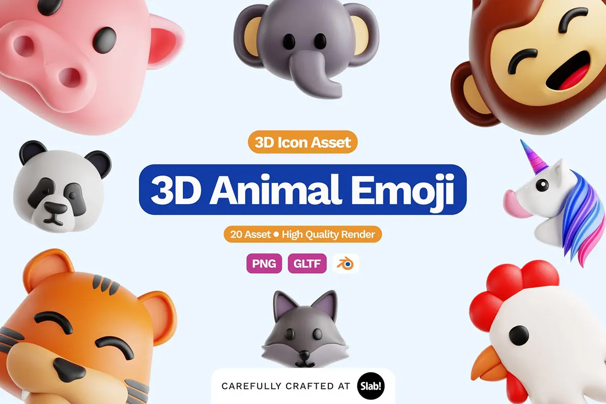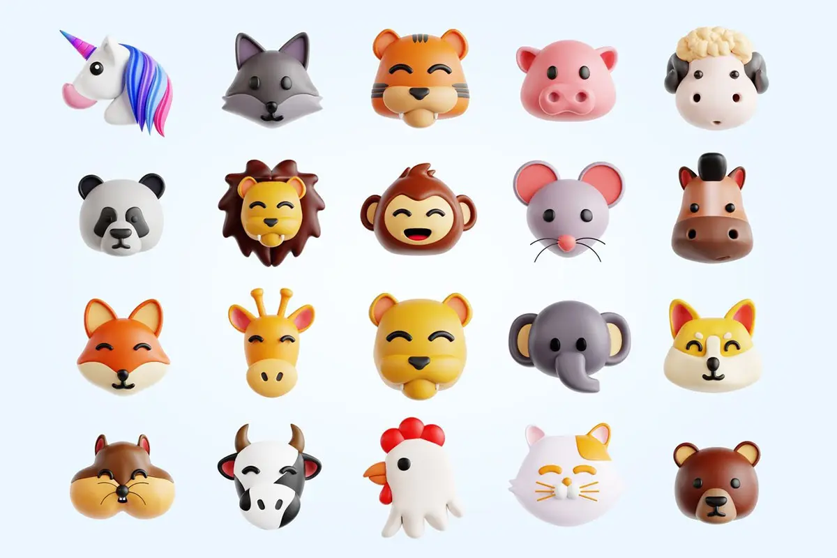 3D Animal Emoji Icon 趣味可爱动物头像表情3D图标icon设计素材webp免抠图