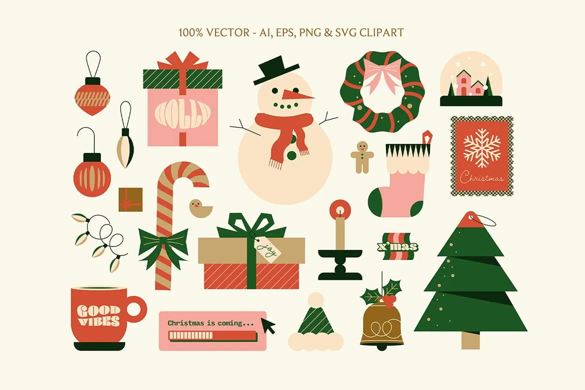 Christmas Stickers Set 22款圣诞节趣味手绘AI矢量插画插图icon图标PNG图形