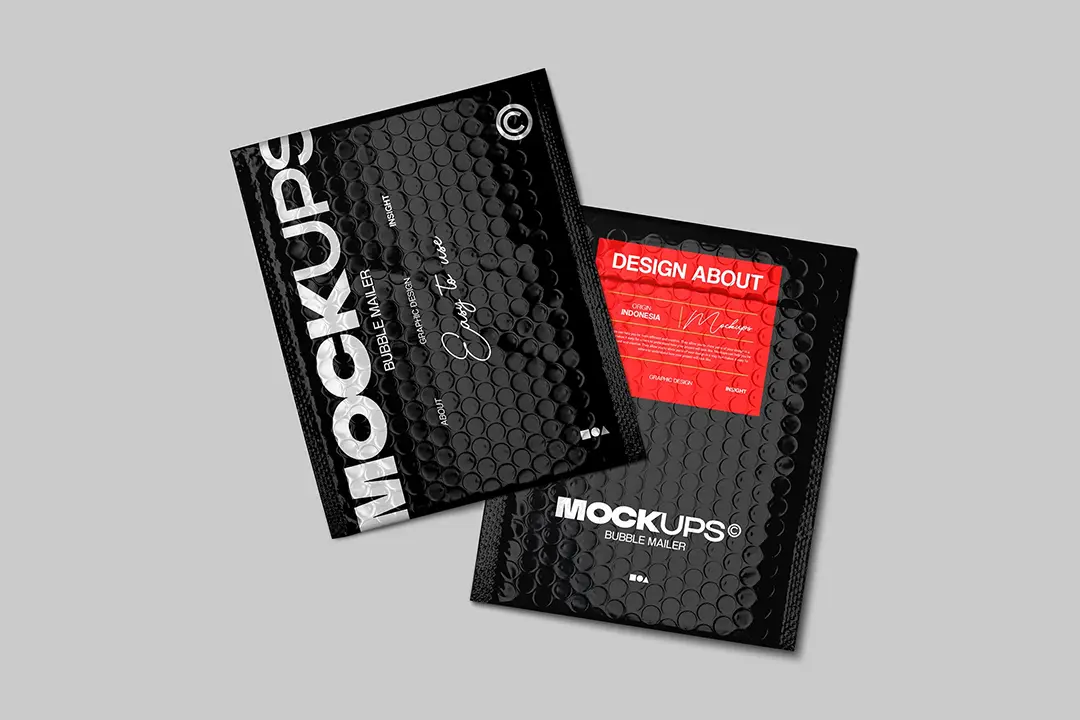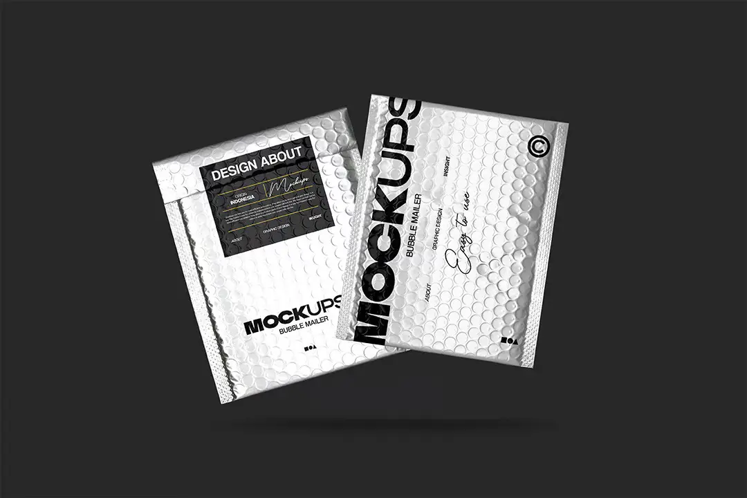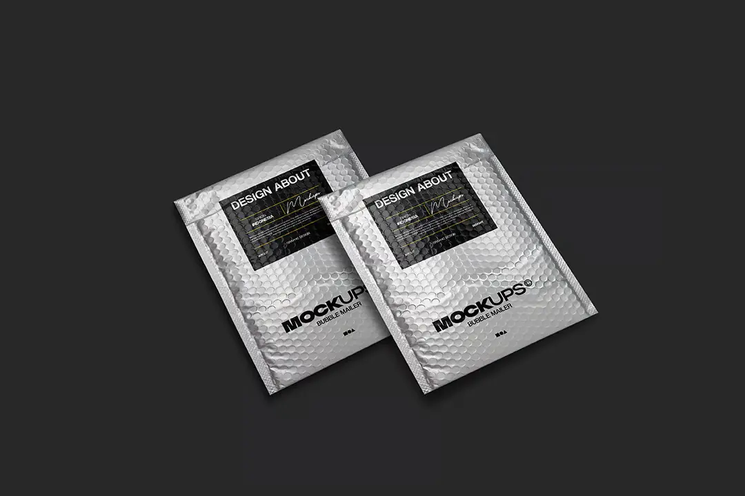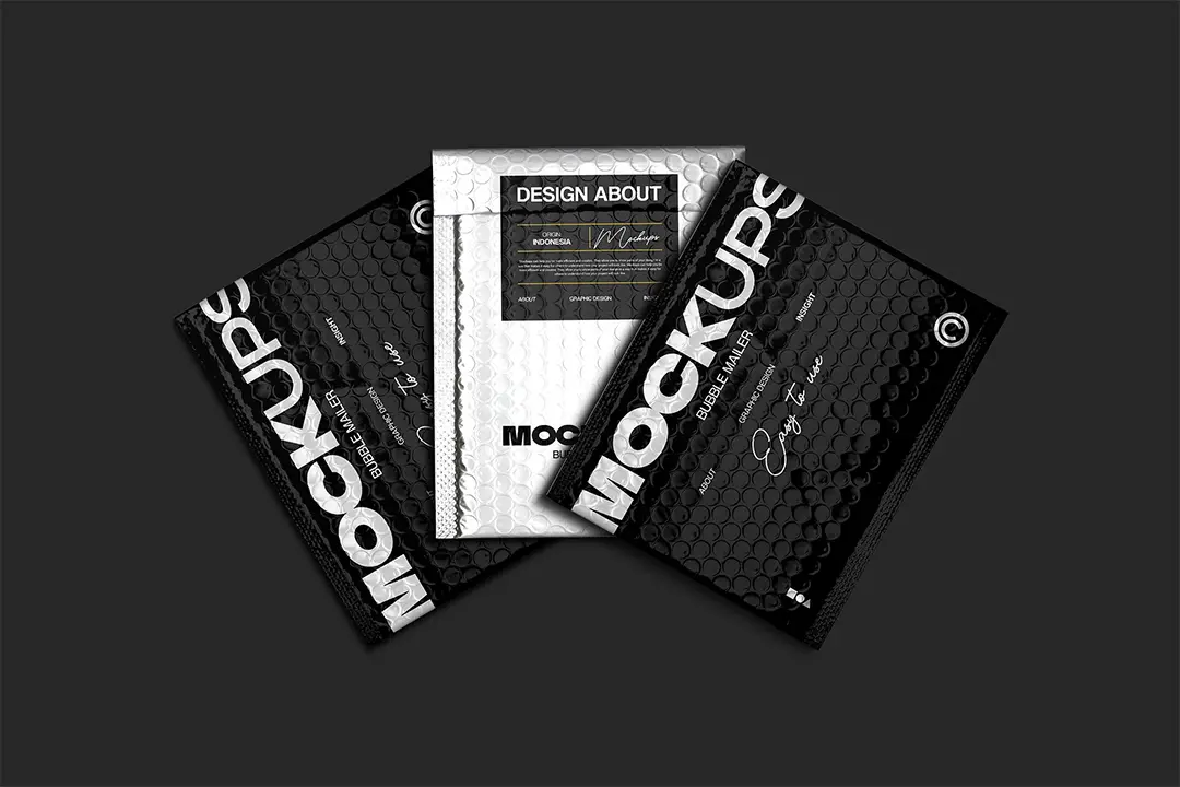 Bubble Maller Packaging Mockup 黑化风邮件快递气泡包装袋贴纸标签设计展示效果图PSD样机模板素材
