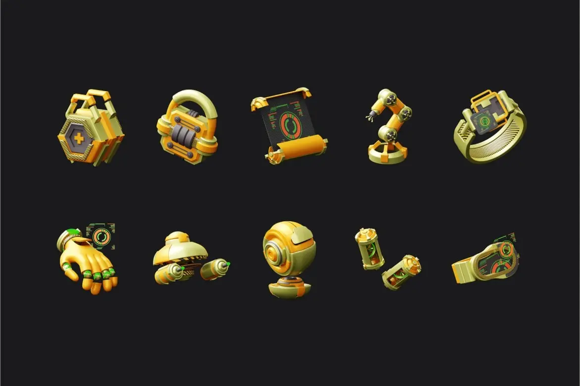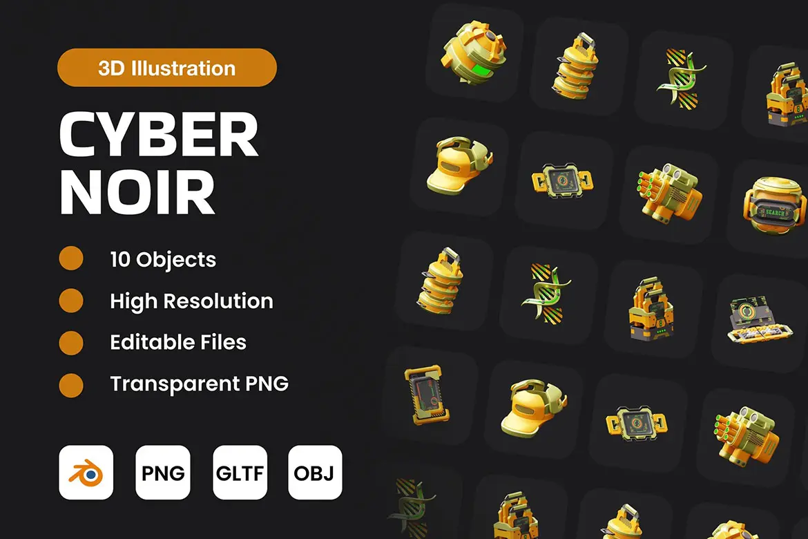 Cyber Noir 3D Illustration 20款3D立体未来科技机械臂基因技术信息加密app应用icon图标webp免抠图片素材
