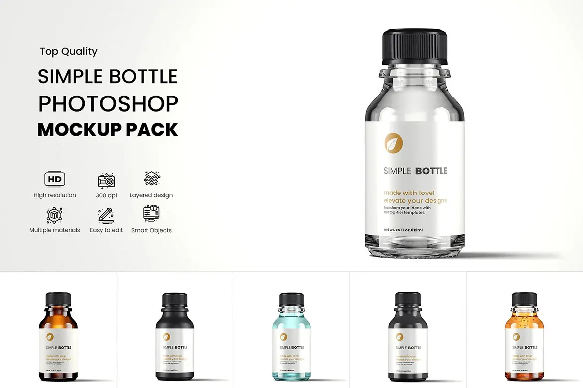 Boston Round Euro Dropper Bottle Mockup Pack 9款铝制哑光磨砂塑料玻璃药瓶瓶身包装标识设计贴图psd样机素材