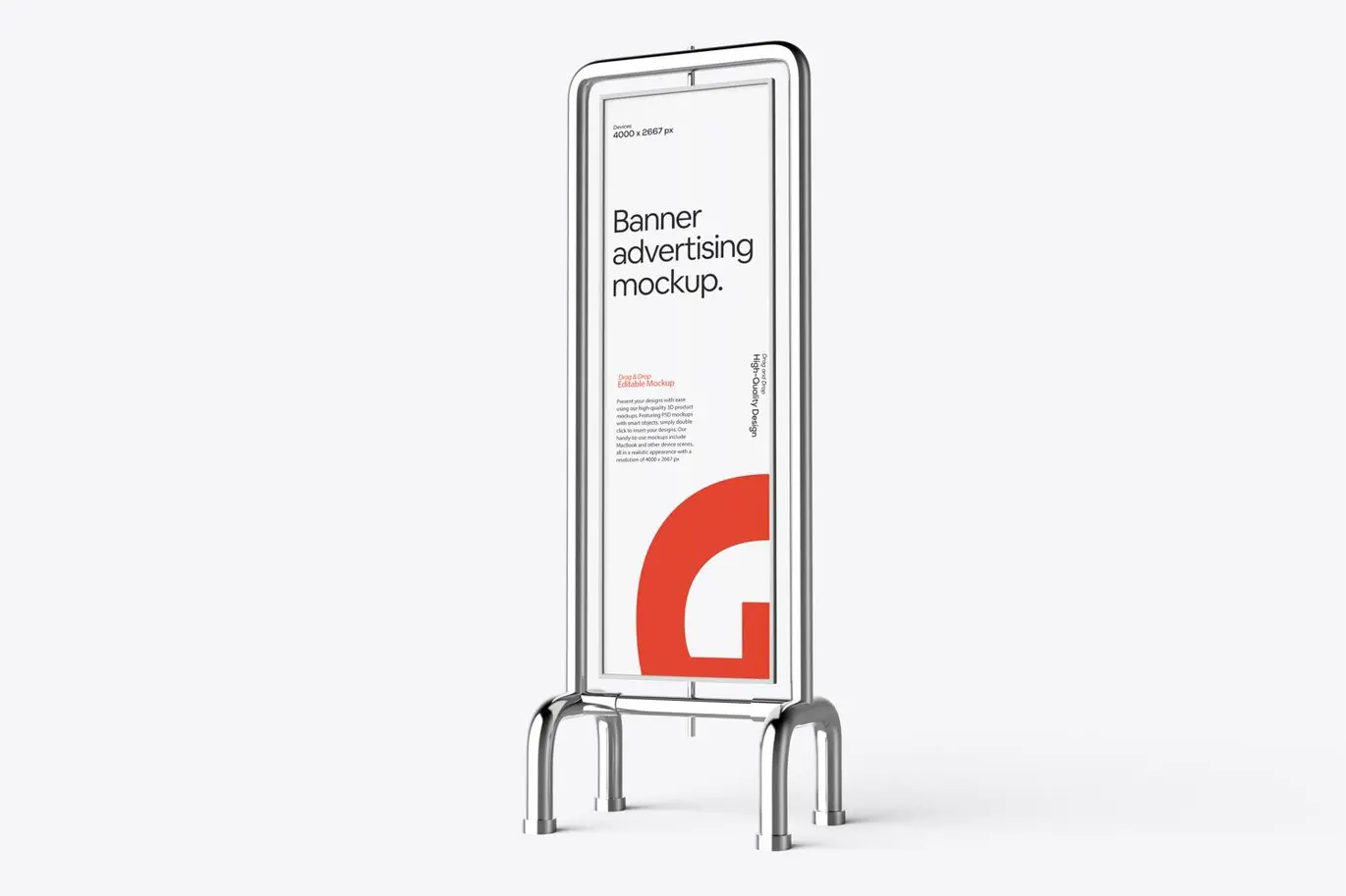 Vertical Banner Sign Mockup 5款金属支架垂直横幅营销广告牌模型展示设计贴图ps样机素材