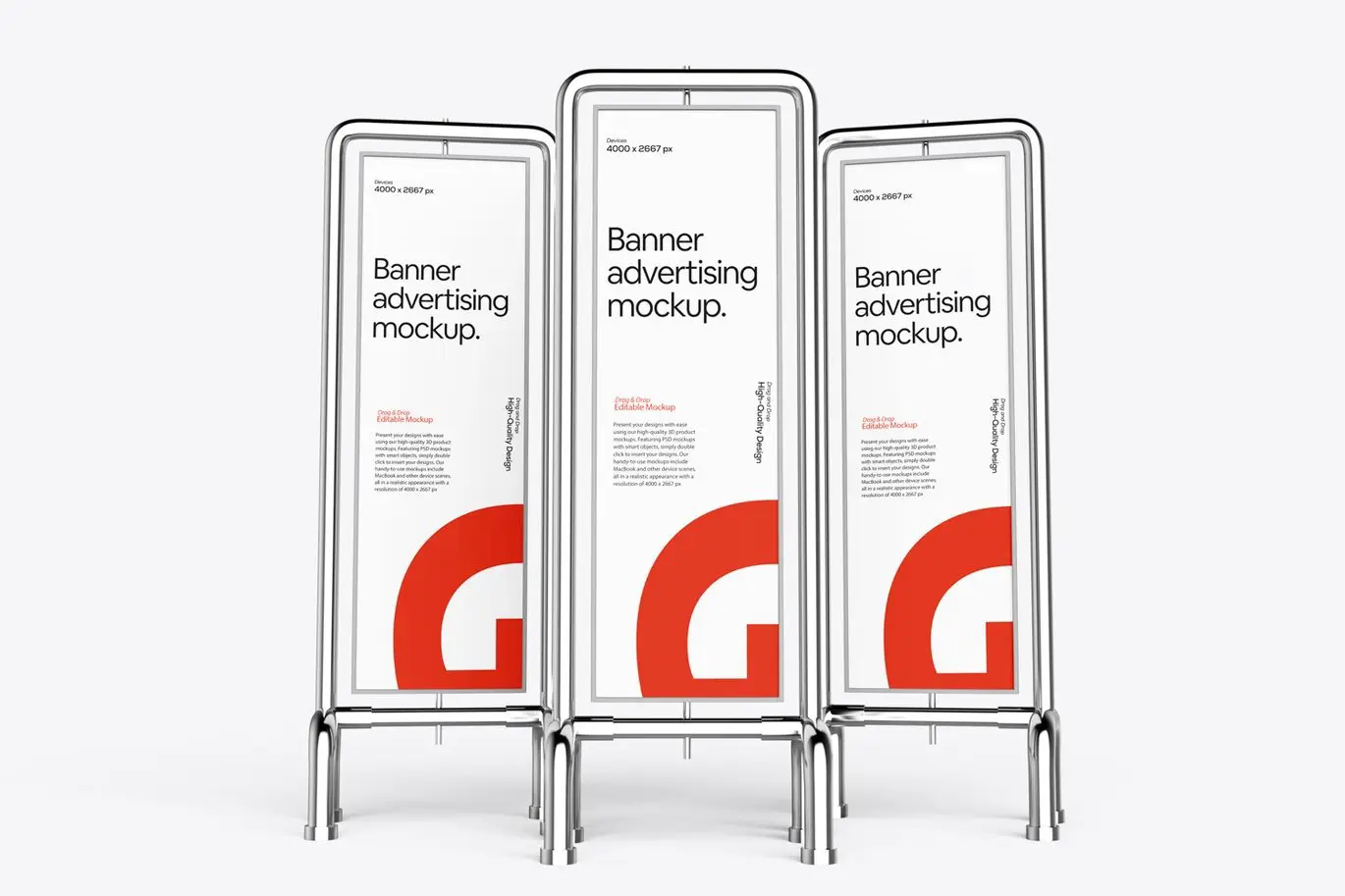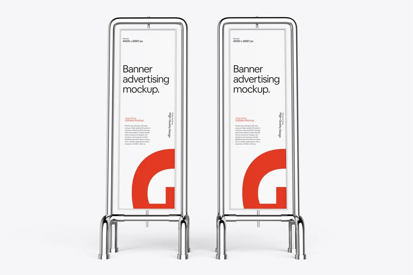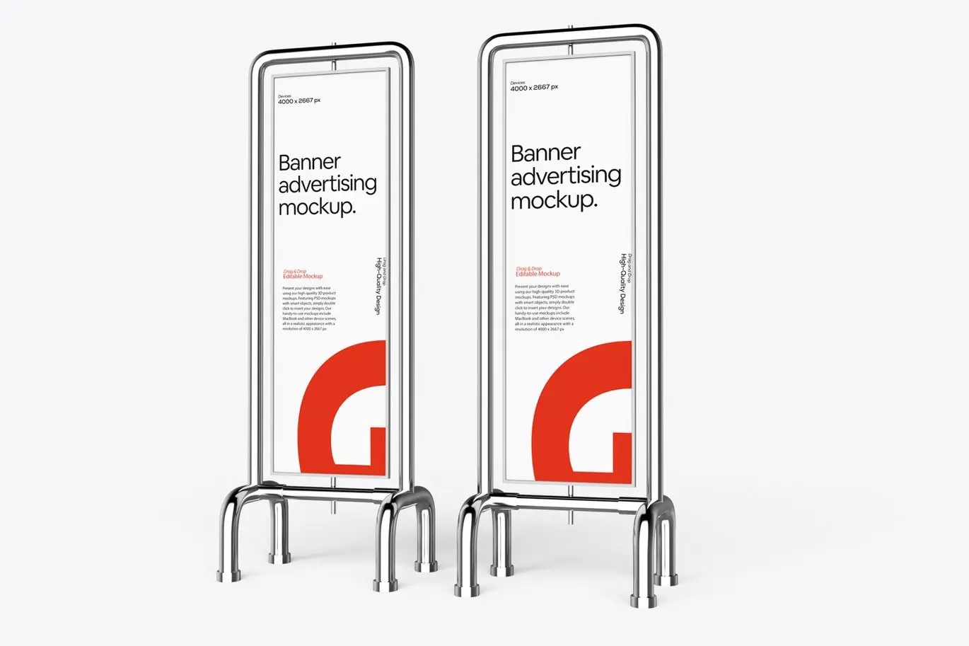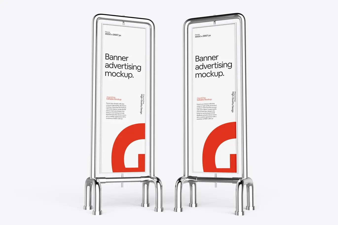 Vertical Banner Sign Mockup 5款金属支架垂直横幅营销广告牌模型展示设计贴图ps样机素材