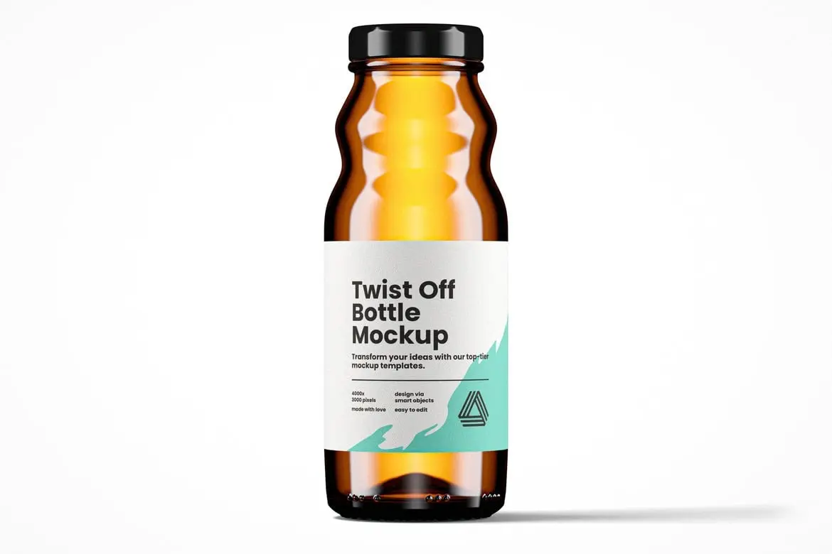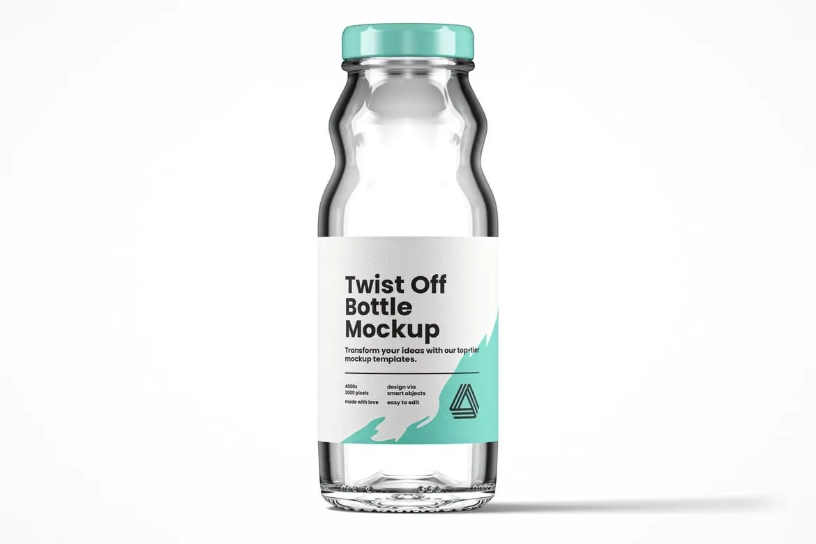 Twist Off Juice Bottle Mockup Pack 5款果汁饮料磨砂透明玻璃瓶模型瓶身包装标签设计贴图ps样机素材