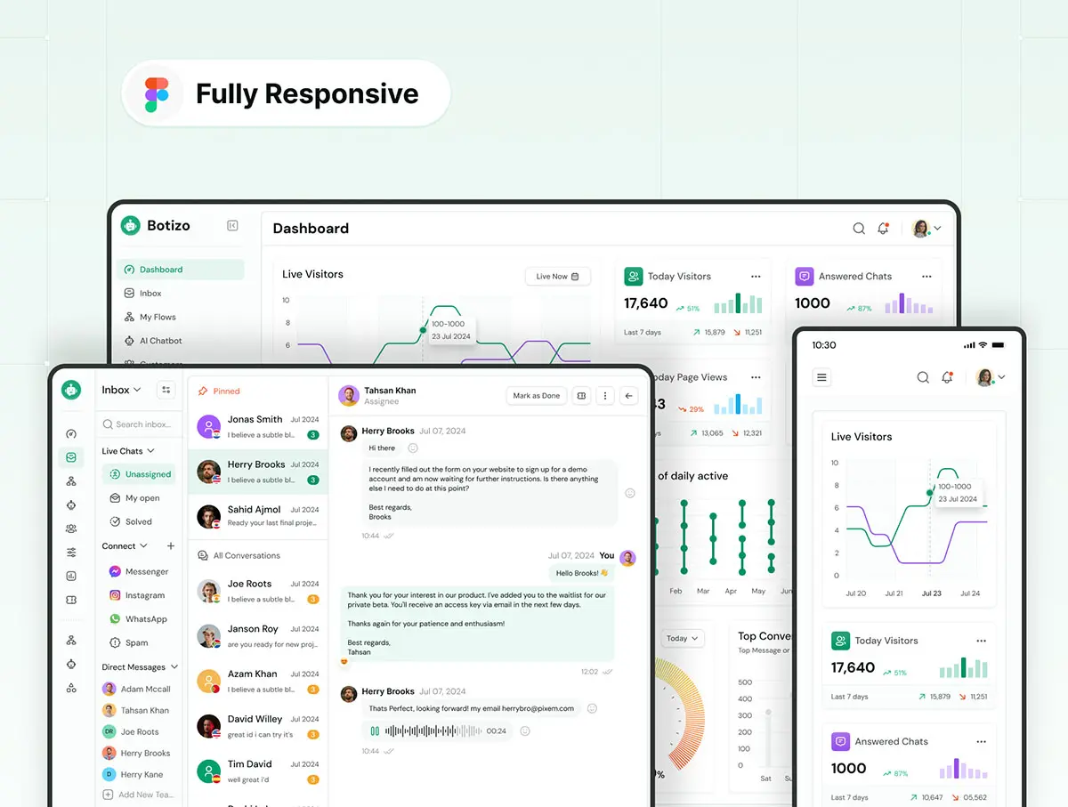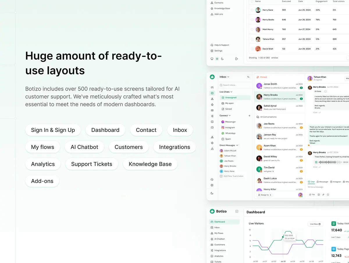 Botizo – AI Customer Support Web App UI KIT 450屏AI 客户支持 Web 应用程序 UI 套件