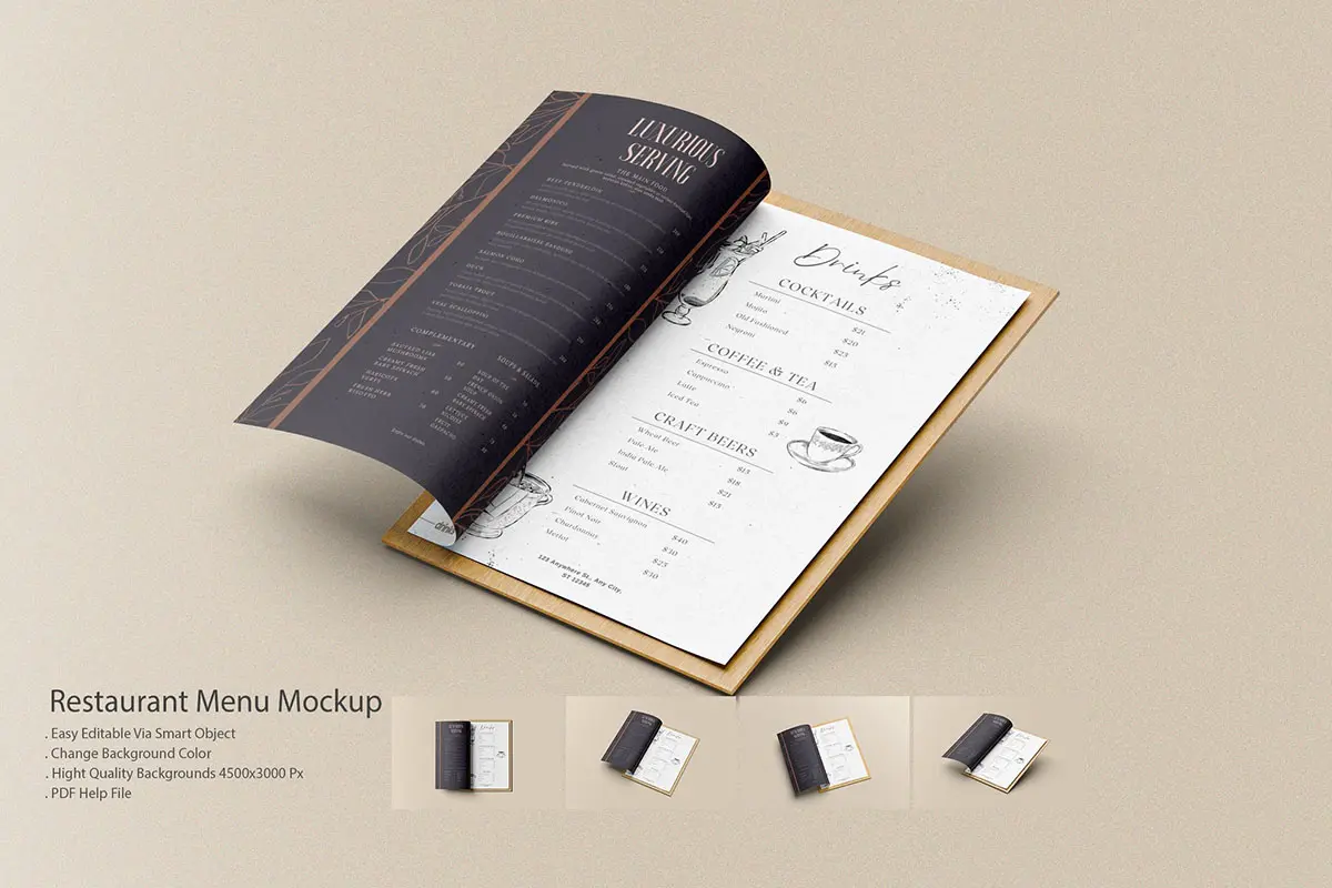Restaurant Menu Mock-Ups v.1 咖啡店餐厅酒吧菜单模型展示设计贴图ps样机素材