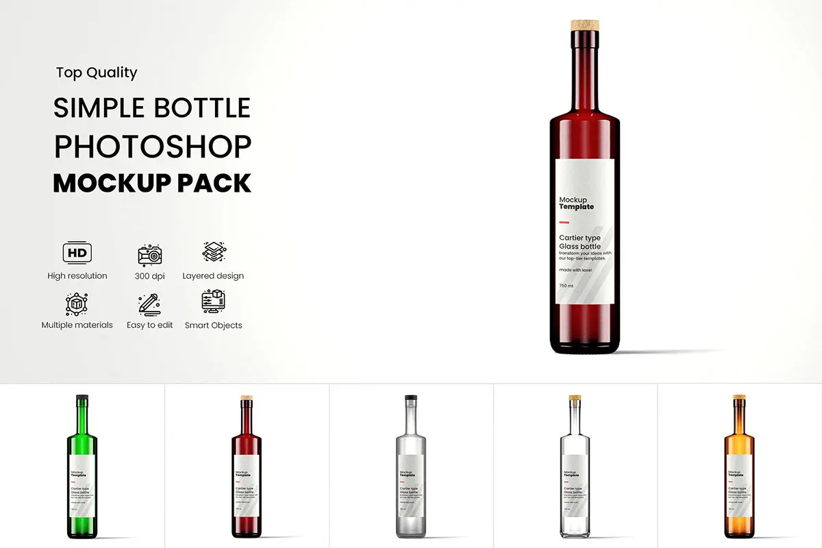 Cartier Bottle Mockup Pack 卡地亚葡萄酒玻璃瓶模型瓶身品牌包装设计贴图ps样机素材