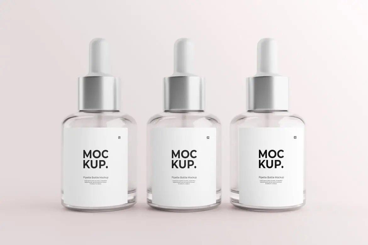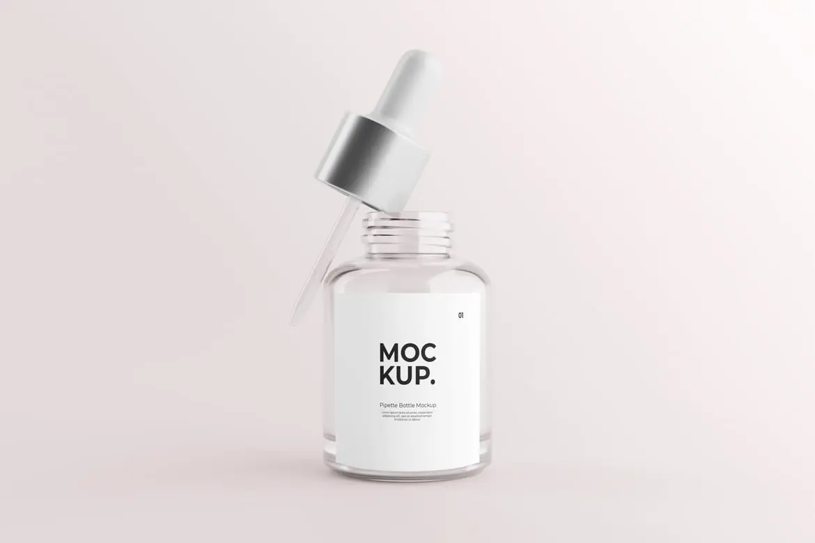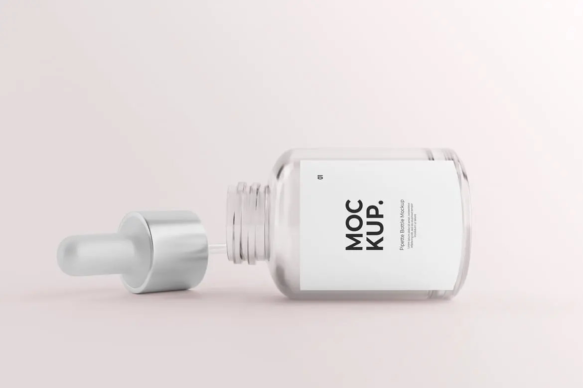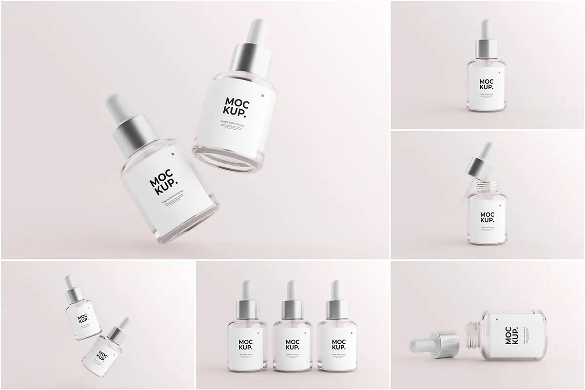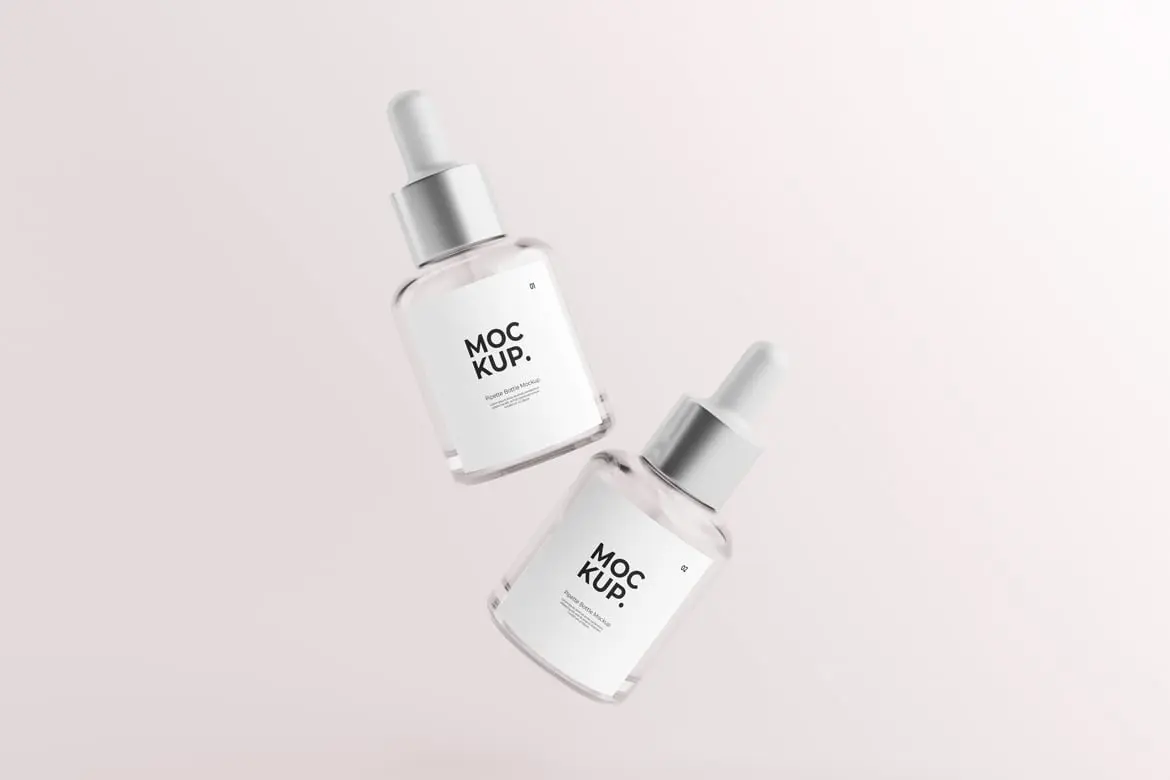 Pipette Bottle Packaging Mockup 化妆品透明滴管玻璃瓶模型瓶身包装设计贴图ps样机素材