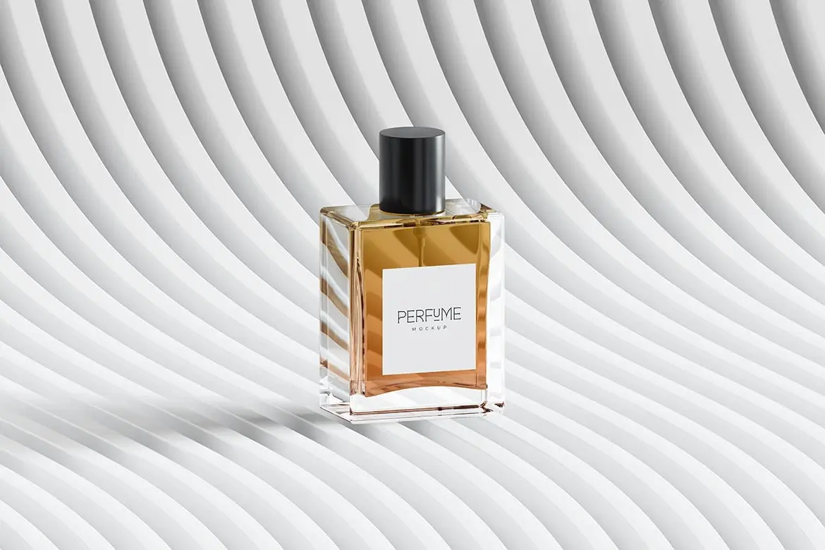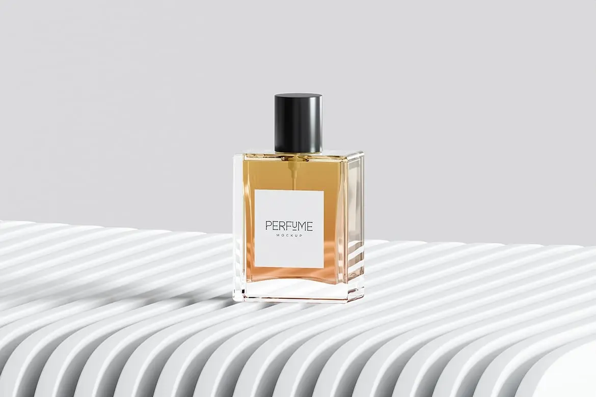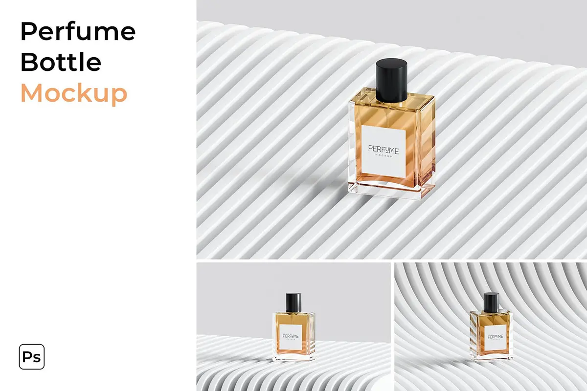 Perfume Bottle Mockup 香水按压喷雾玻璃瓶模型瓶身标签标识设计贴图ps样机素材