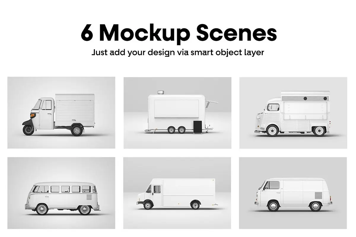 Vehicle Mockups vol.5 面包车货车运输车餐车模型车身展示设计贴图ps样机素材
