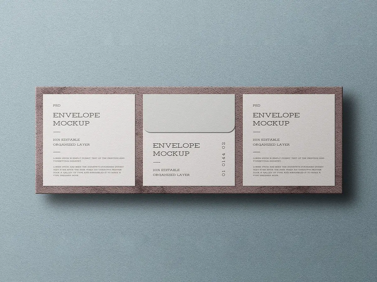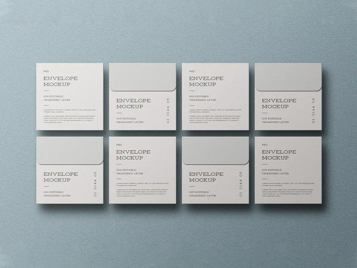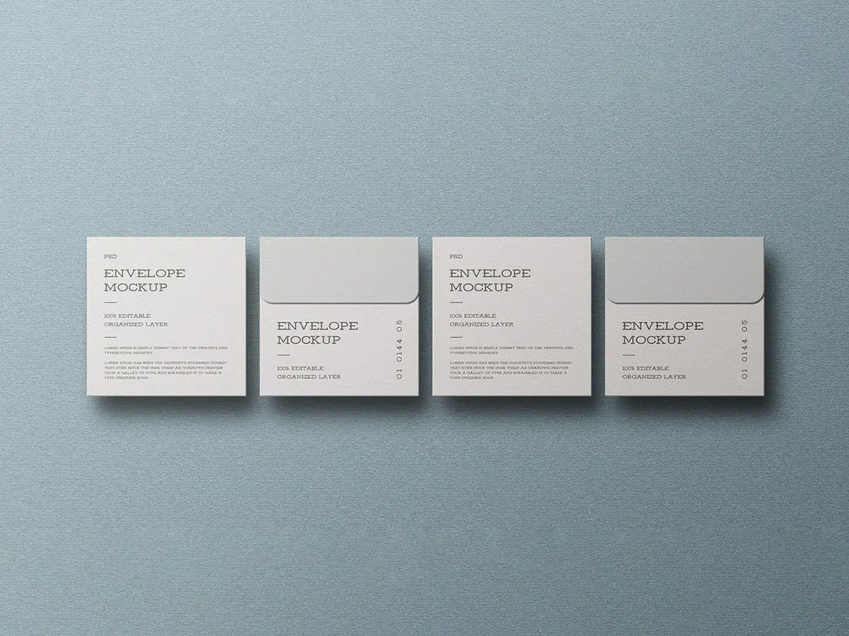 Minimal Square Envelope Mockup Set 方形信封模型品牌展示设计贴图ps文具样机素材