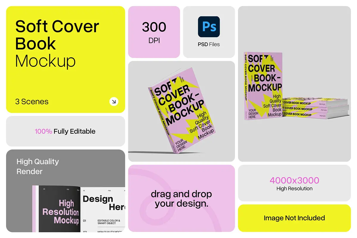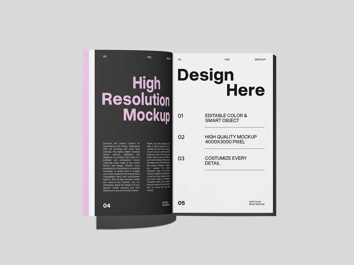 Book Mockup 平装软面书本书籍模型封面内页展示设计贴图ps样机素材