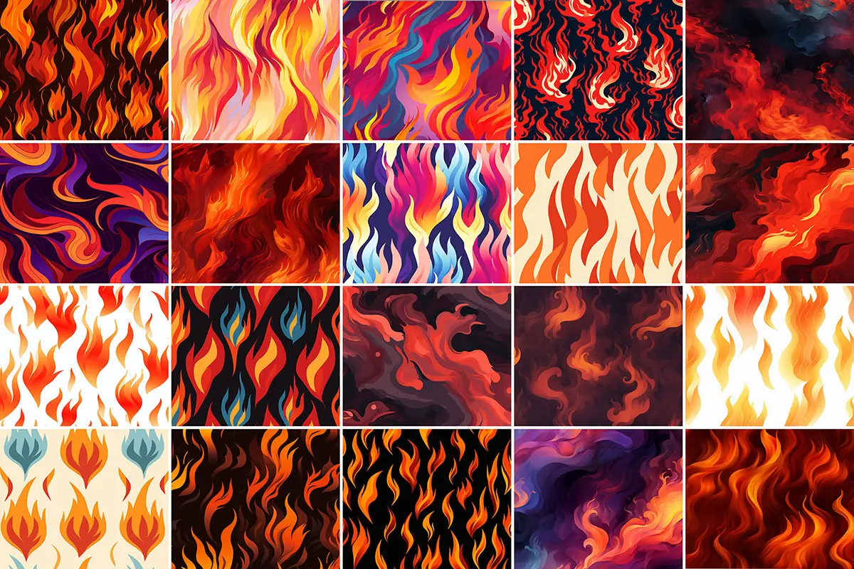400+ Fire Patterns 457款时尚卡通漫画艺术燃烧火焰无缝拼接图案背景底纹图片素材