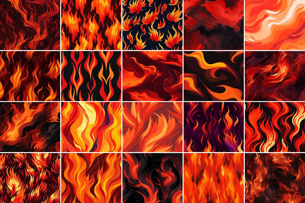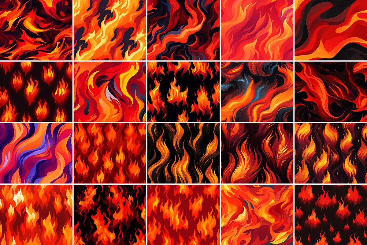 400+ Fire Patterns 457款时尚卡通漫画艺术燃烧火焰无缝拼接图案背景底纹图片素材