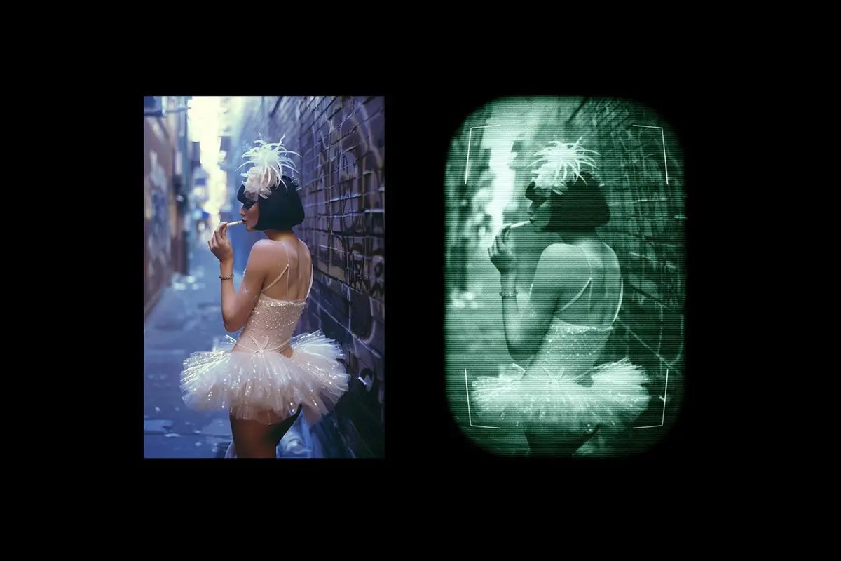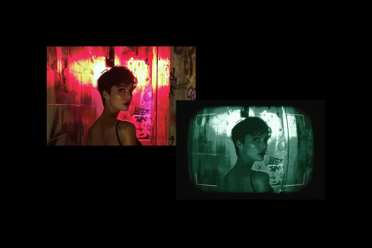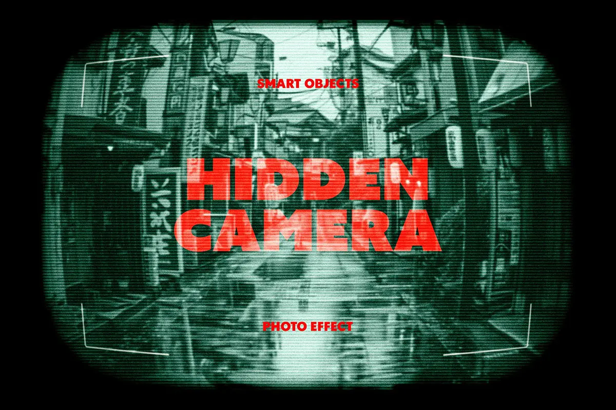 Hidden Camera Photo Effect 复古单色条纹摄像头监控显示器画面图像照片ps样机特效生成模板