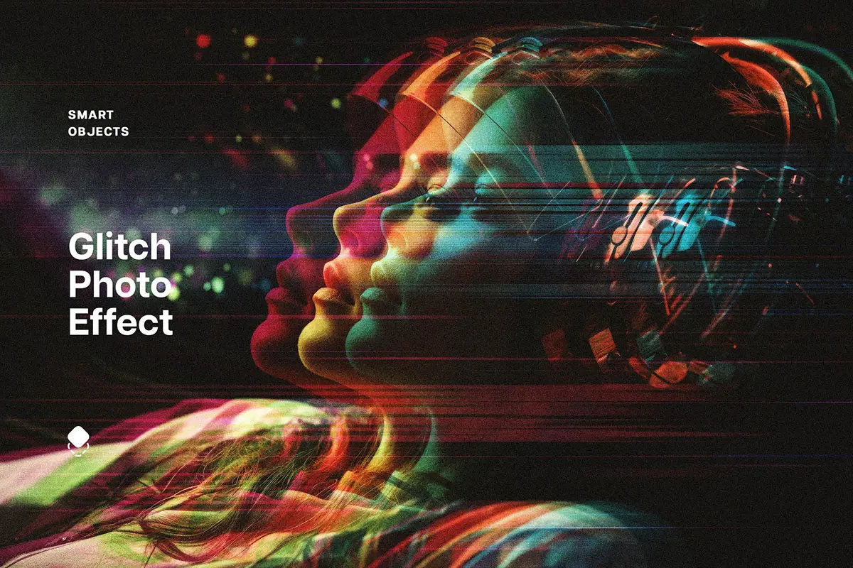 Glitching Anaglyph Photo Effect 照片图像立体叠影故障迷幻ps特效样机素材预设模板