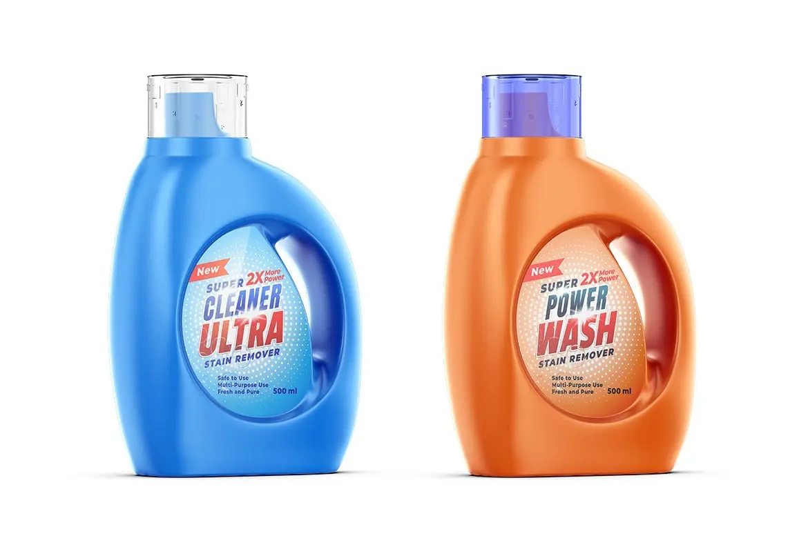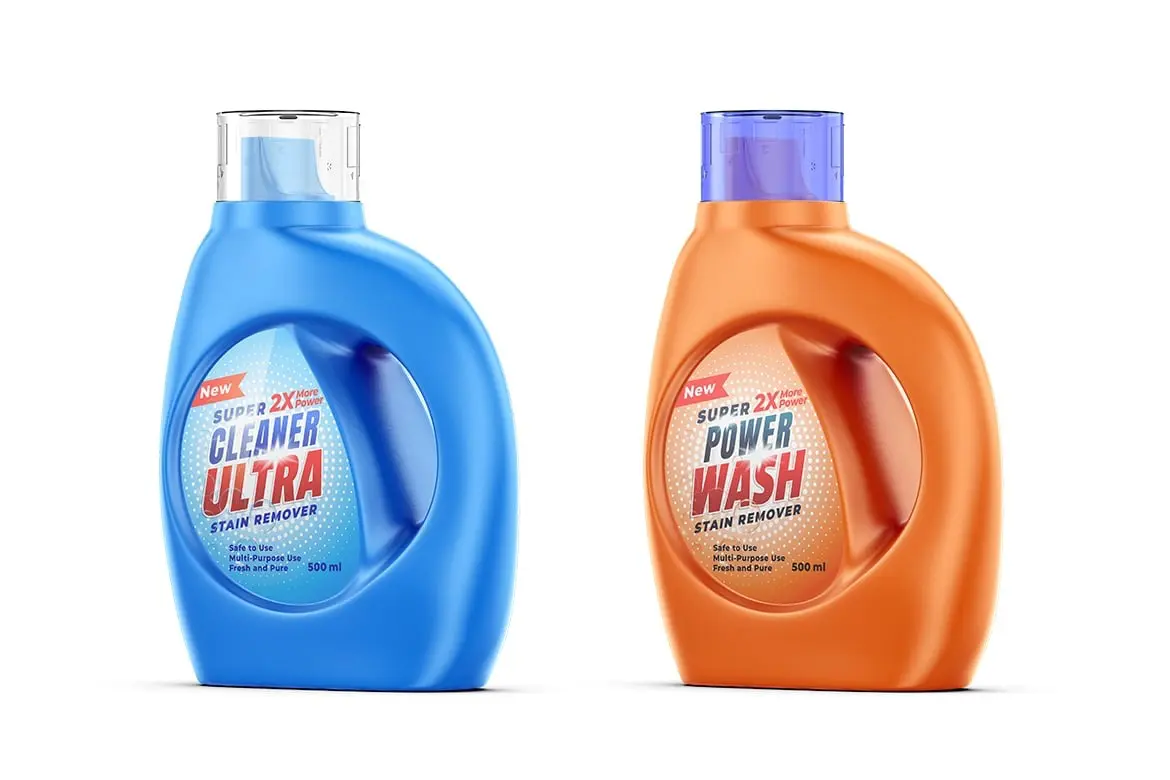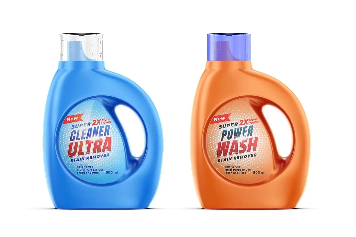 Liquid Detergent Bottle Mockup 液体洗涤洗衣液塑料瓶装模型品牌包装logo标识设计贴图ps样机素材免费下载