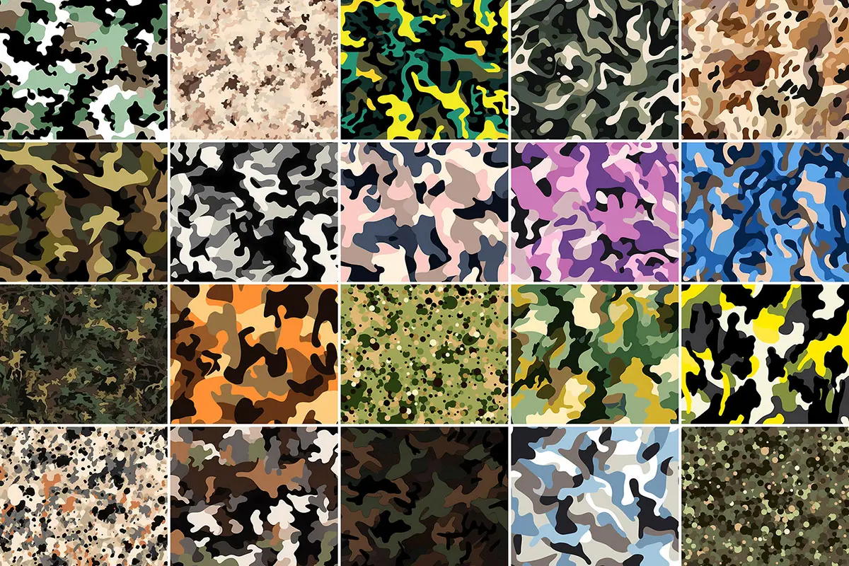 400+ Camouflage Patterns 416款潮流时尚潮牌艺术迷彩无缝拼接图案设计背景底纹图片素材