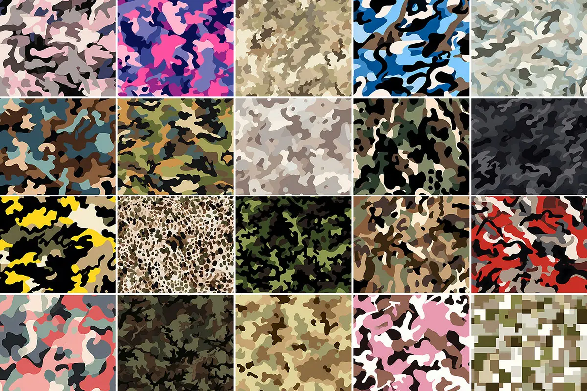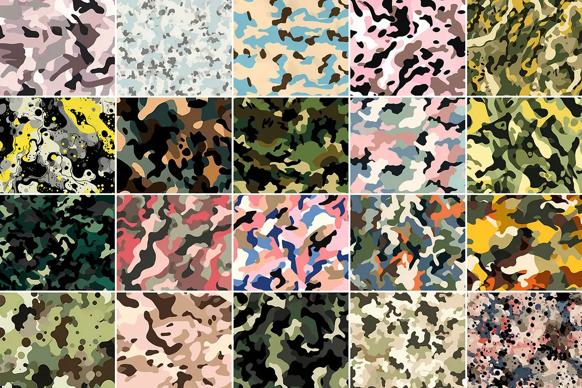 400+ Camouflage Patterns 416款潮流时尚潮牌艺术迷彩无缝拼接图案设计背景底纹图片素材
