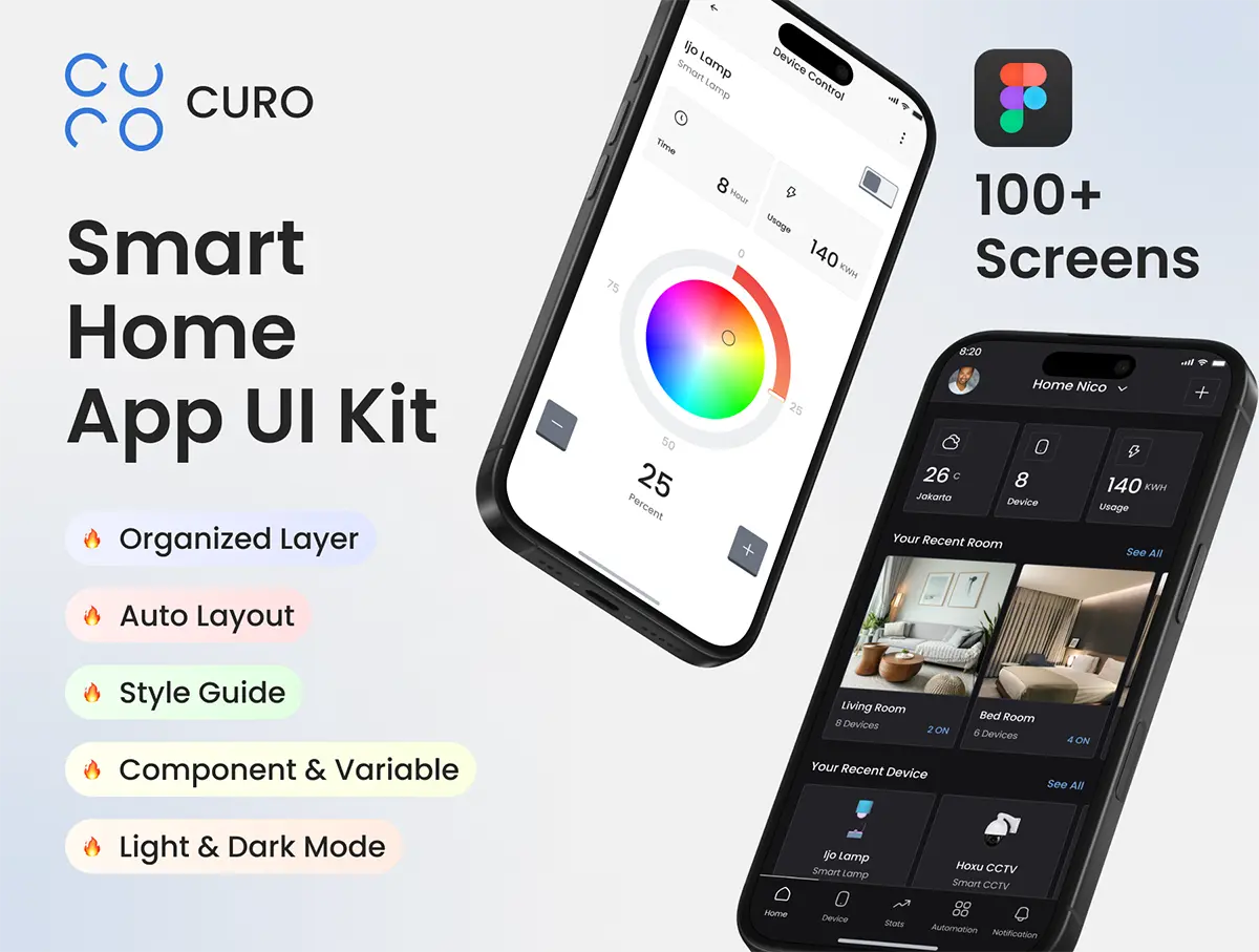 Curo Smart Home UI Kit 100+张智能家居手机app界面设计物联网ui设计素材