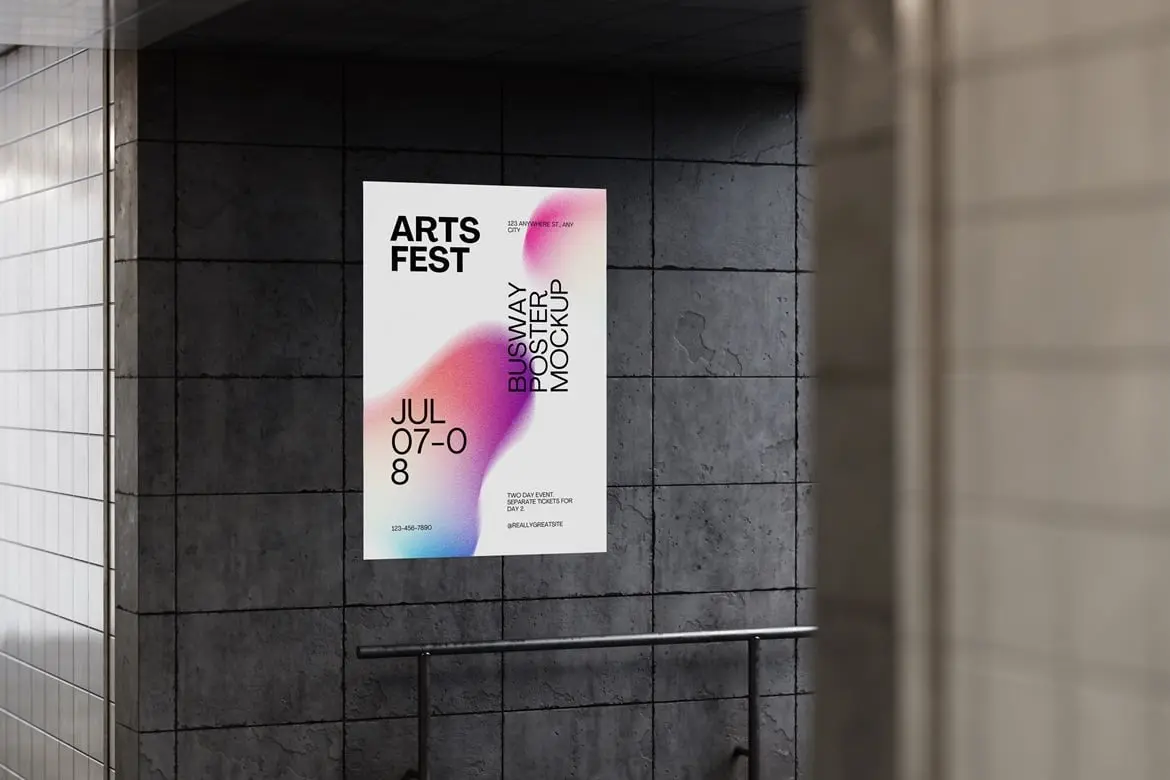 Busway Glued Poster Mockup 6款地下通道墙面褶皱胶合海报广告模型展示设计贴图ps样机素材