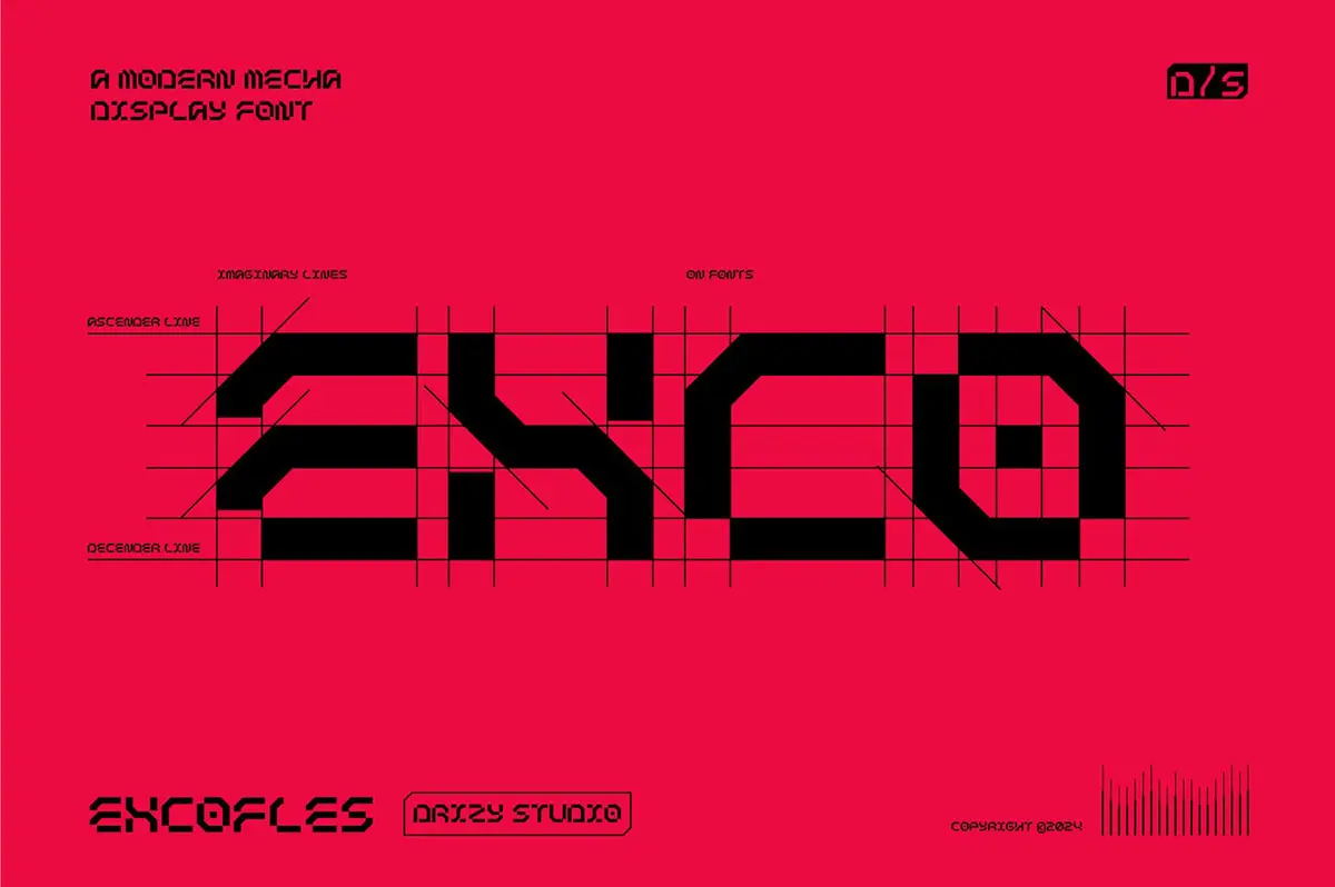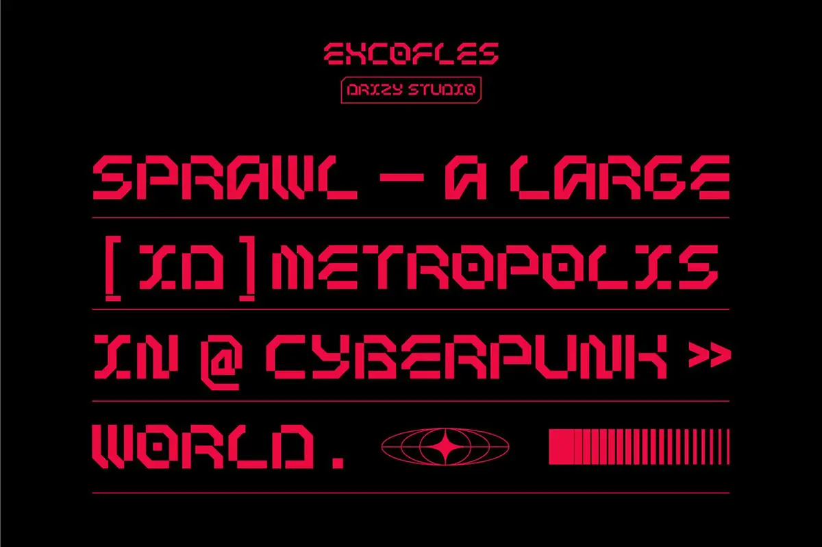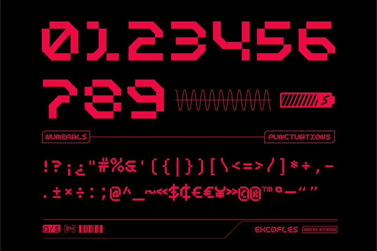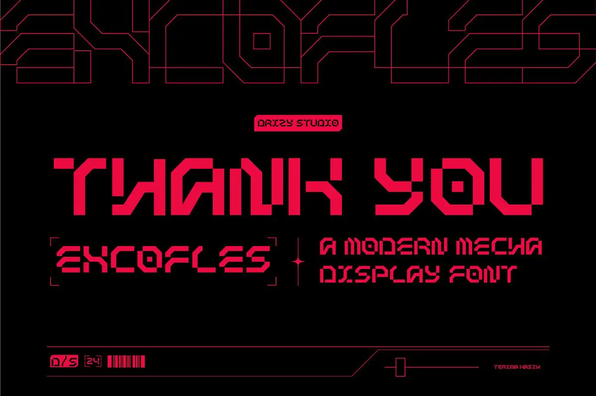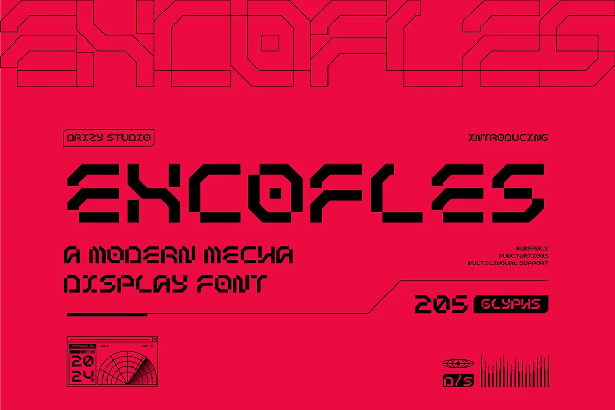 Excofles – Modern Mecha Display Font 潮流未来科幻电竞游戏赛博朋克科技海报封面标题英文字体