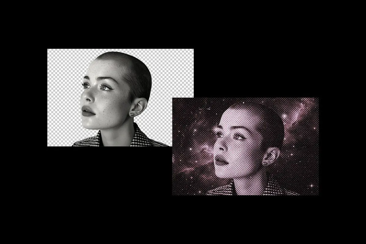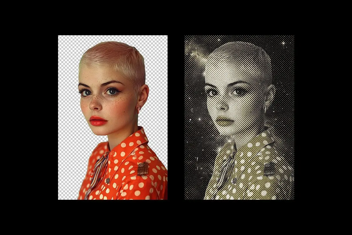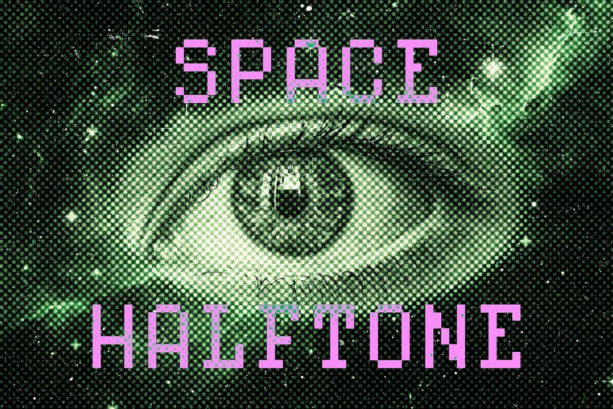 Space Halftone Photo Effect 宇宙空间复古半调孔板印刷点画照片图像ps特效预设模板