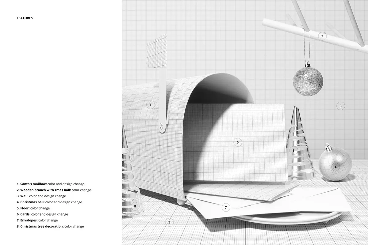 Christmas Santa Mailbox with Cards Mockup 时尚圣诞节新年信箱信纸贺卡设计作品贴图ps样机场景展示效果图