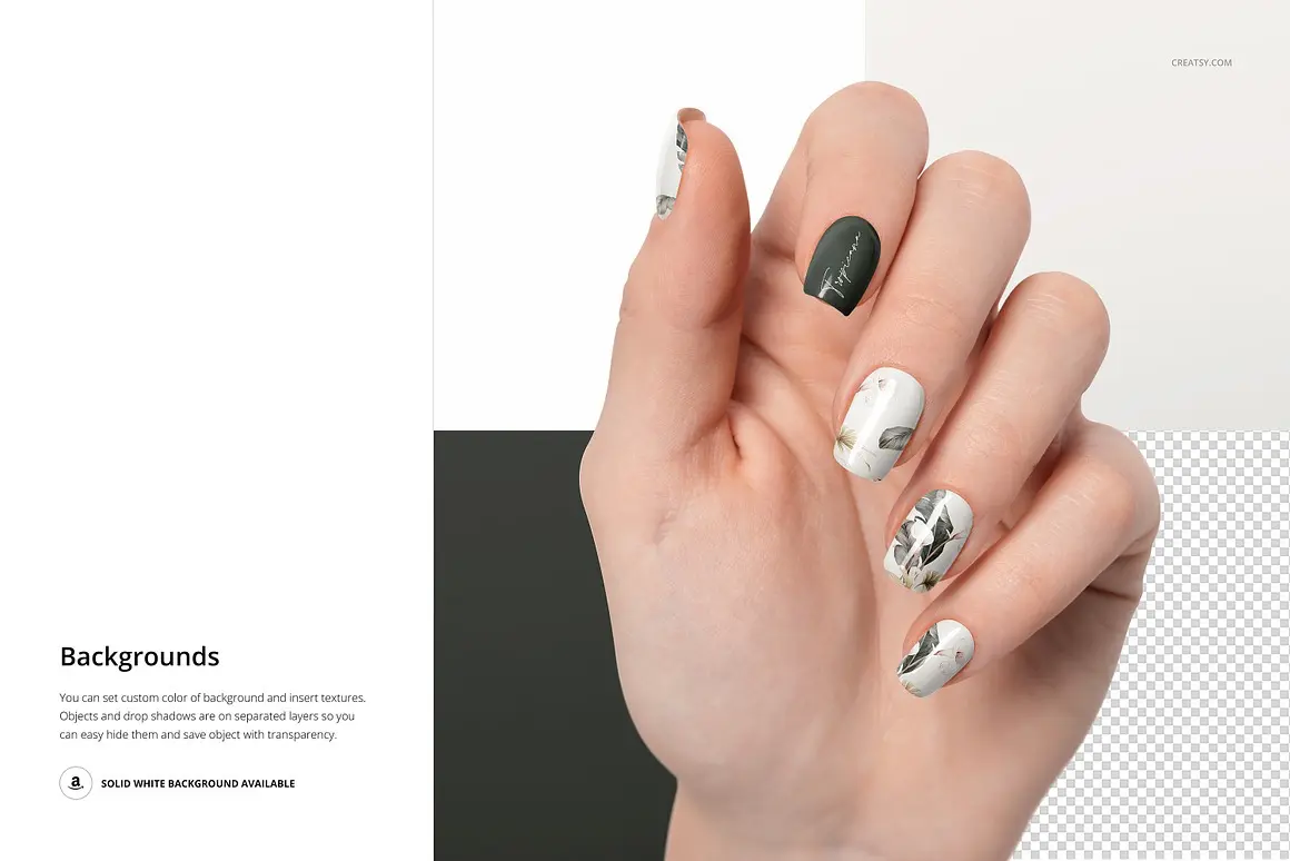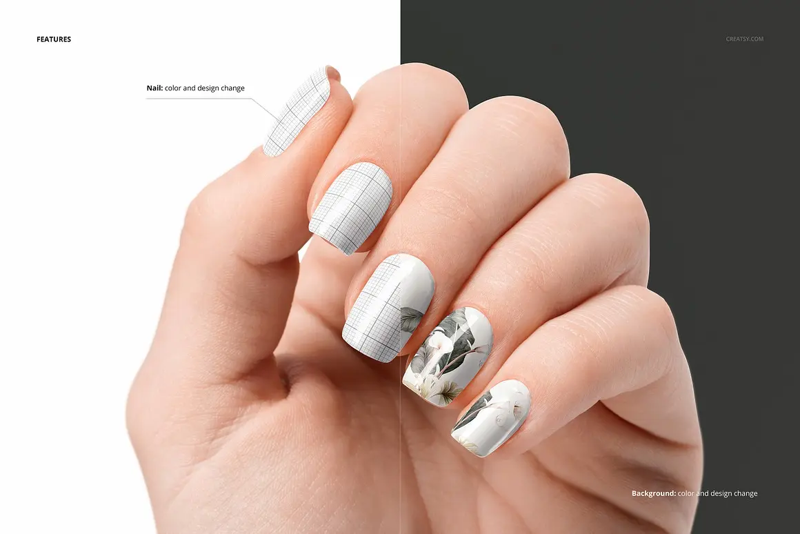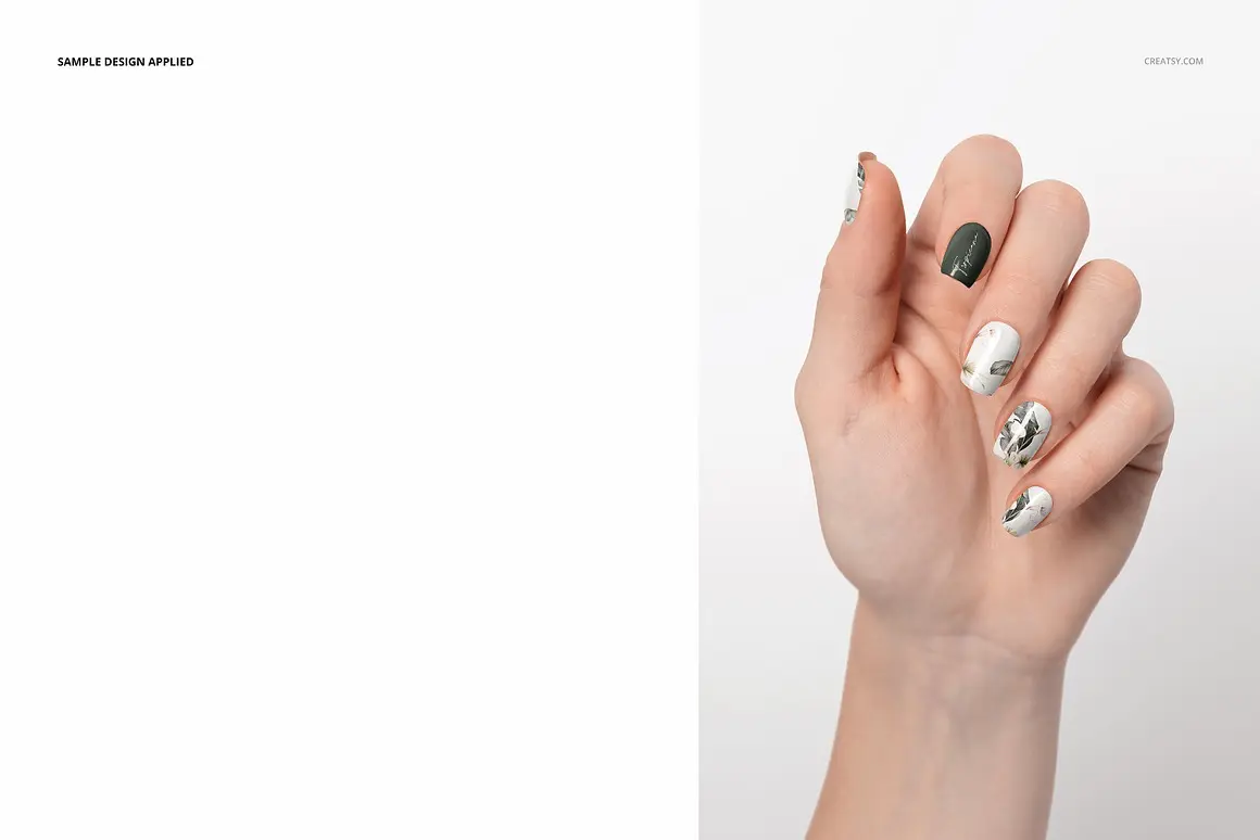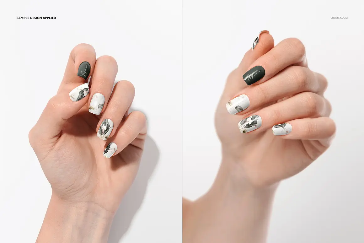 Squoval Nails Mockup Set 6款指甲油贴片美甲护理艺术设计作品手模展示效果图ps样机素材