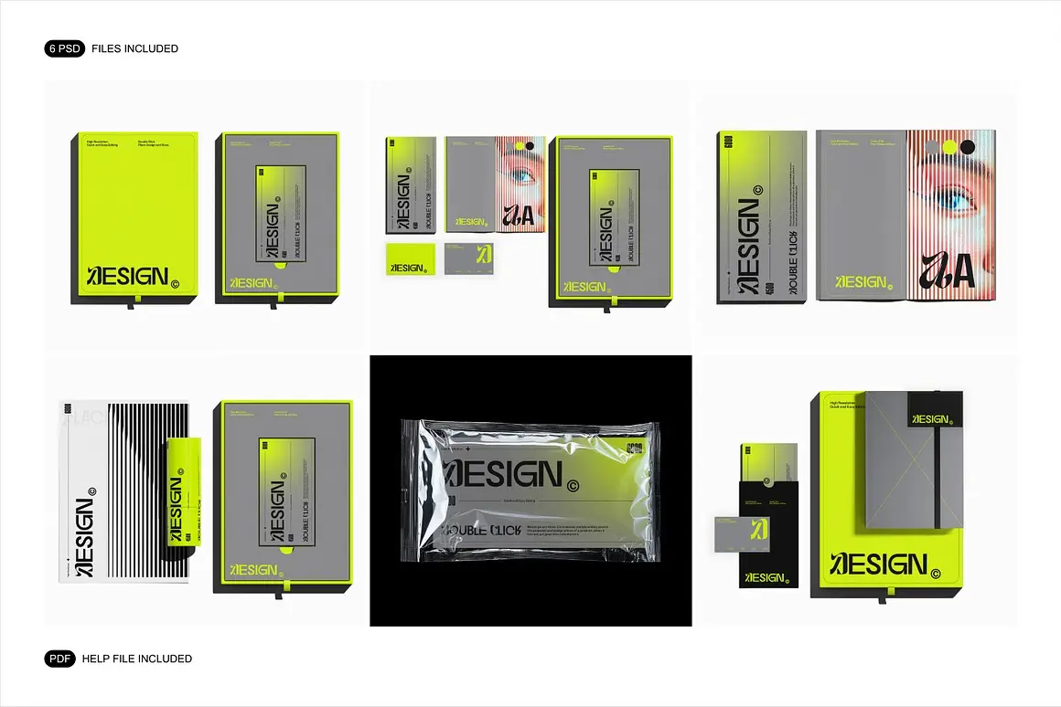 Brand Identity Mockup Set 6款礼盒画册邀请函请柬贺卡名片包装品牌VI应用ps样机展示效果图