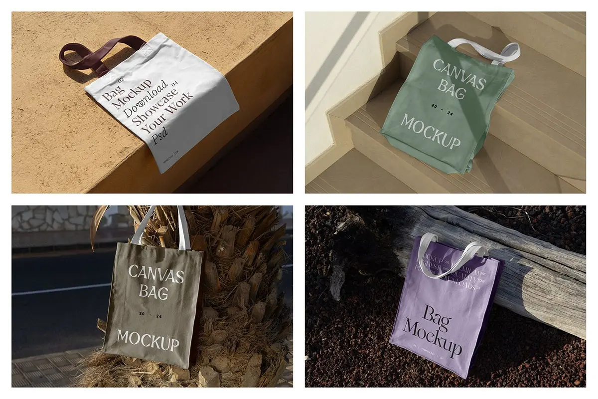 Canvas Bag Mockups vol.6 – Shopping Bags 6款帆布袋手提袋购物袋模型品牌logo标识设计贴图psd样机素材
