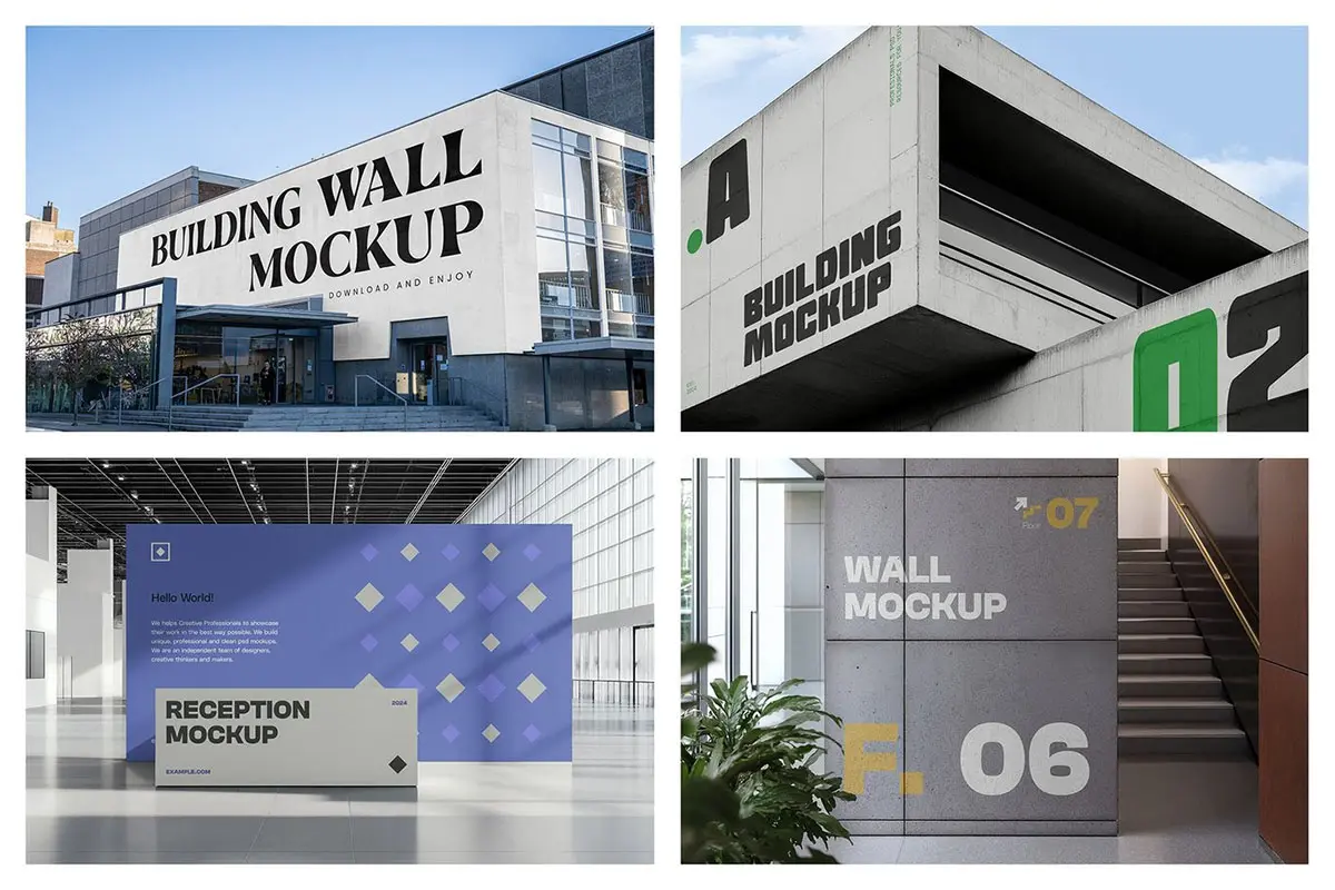 Wall Advertising Mockups vol.6 户外水泥墙面导视标识广告标语设计贴图ps样机素材展示效果图