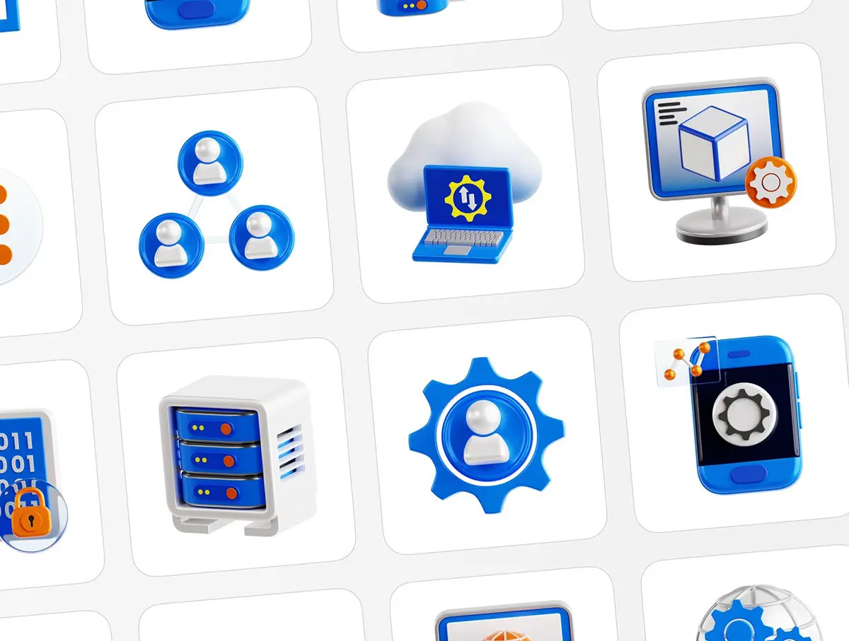 Saas 3D Illustration 30款3D软件即服务SAAS云端计算存储技术插图插画webp免抠图片素材