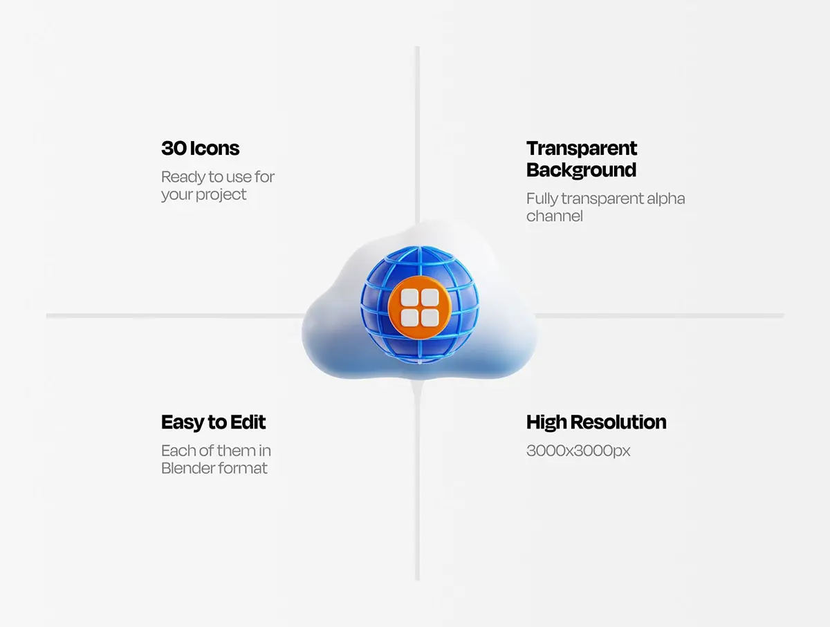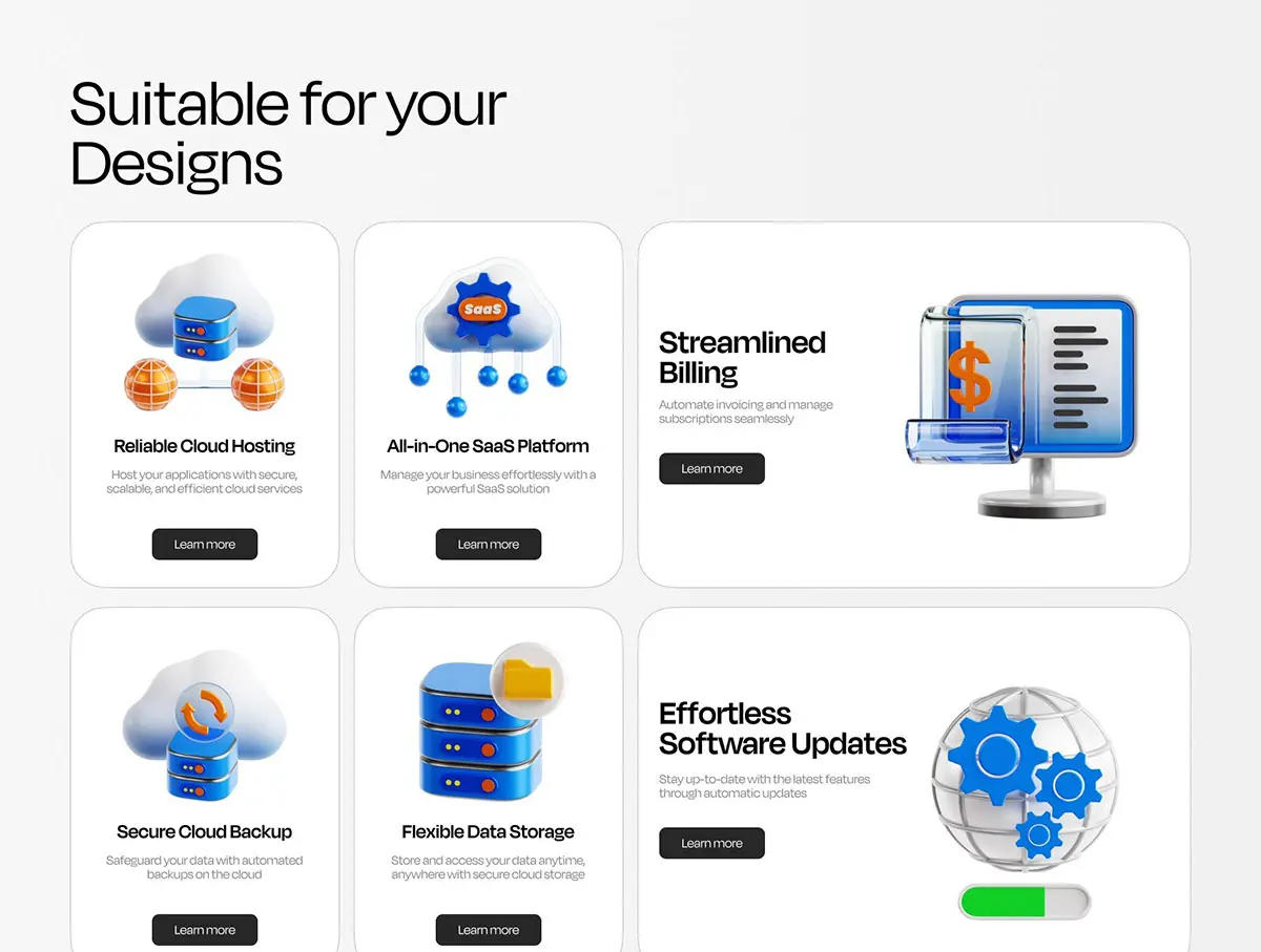 Saas 3D Illustration 30款3D软件即服务SAAS云端计算存储技术插图插画webp免抠图片素材