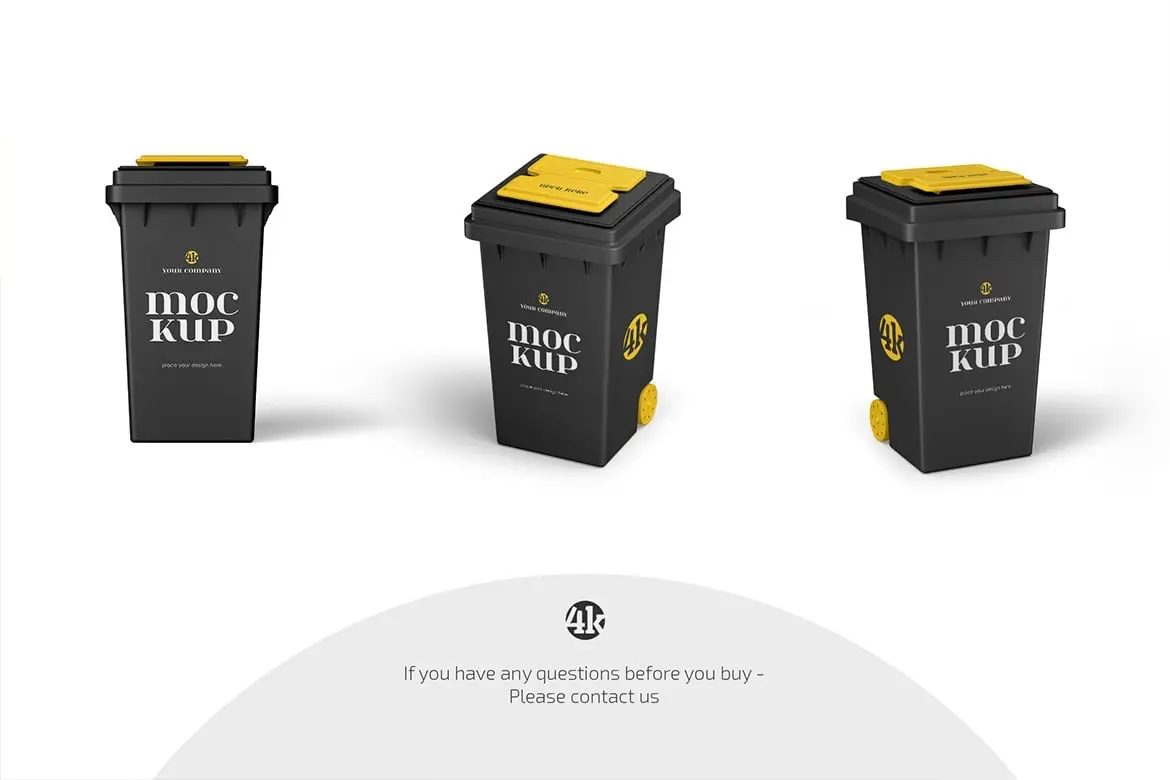 Rubbish Bin Mockup Set 户外街道塑料矩形垃圾回收箱模型广告展示设计贴图ps样机素材模板