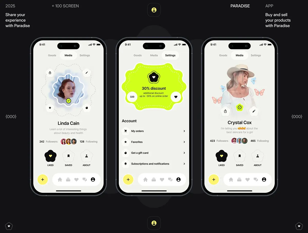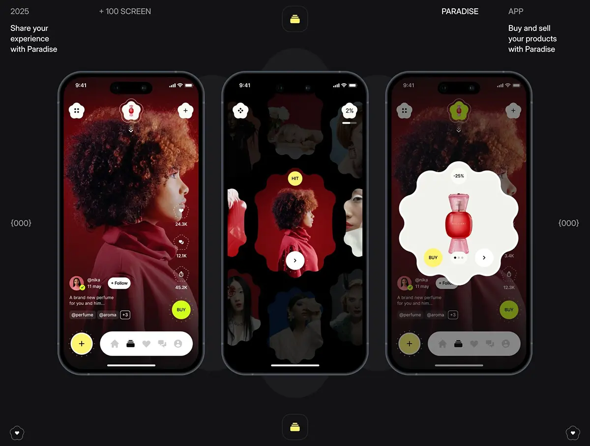 Paradise App UI kit 100+屏创意在线直播购物销售电商应用程序app ui界面设计figma模板套件