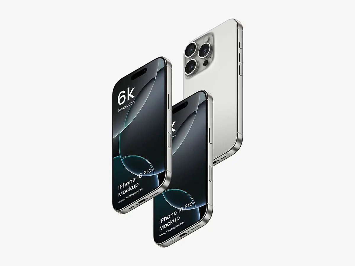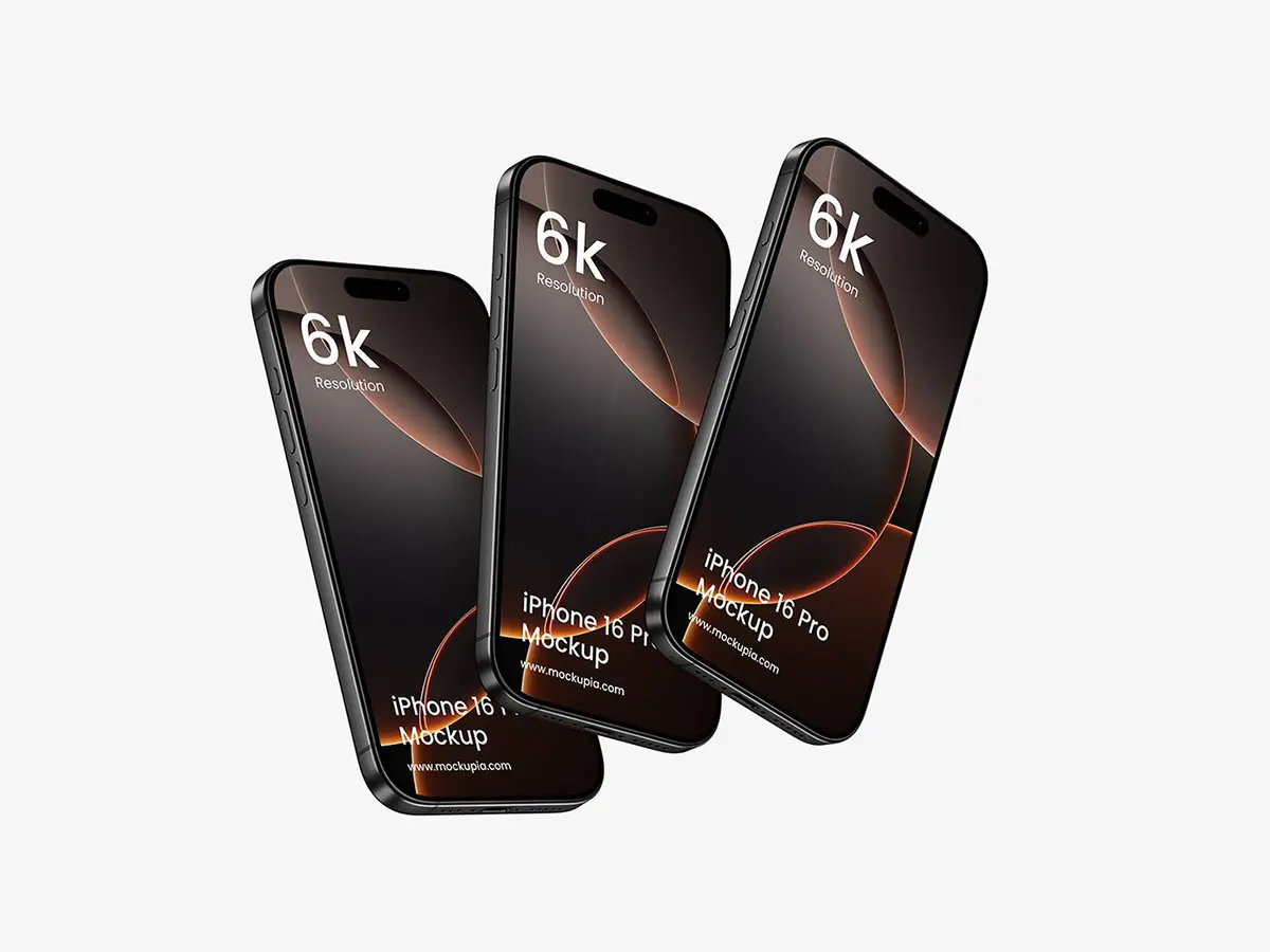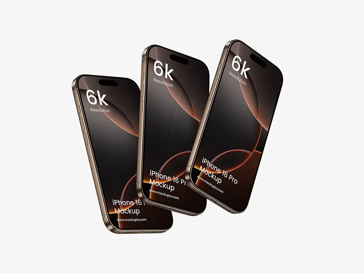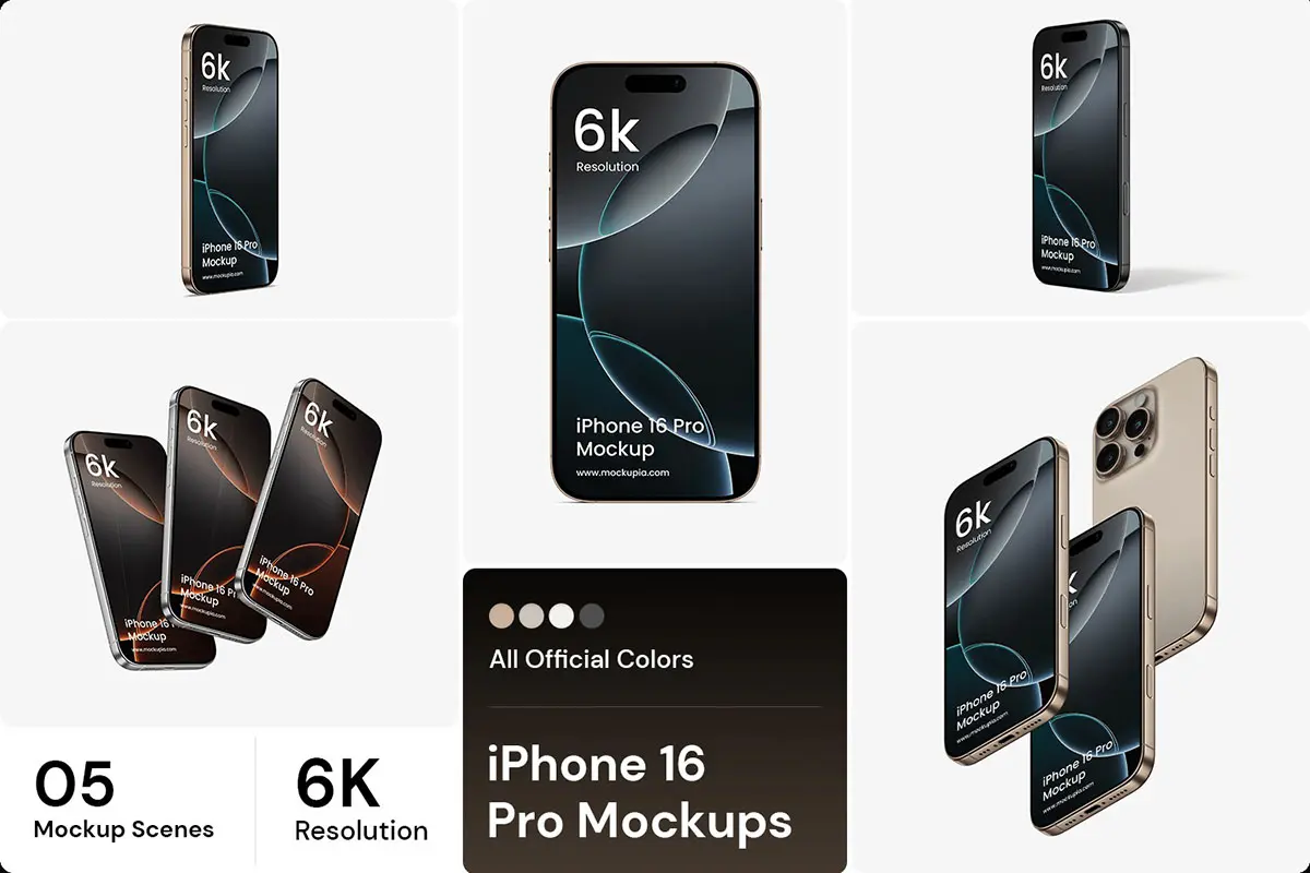 iPhone 16 Pro Mockup 5款苹果16 Pro手机模型屏幕展示设计贴图psd样机素材