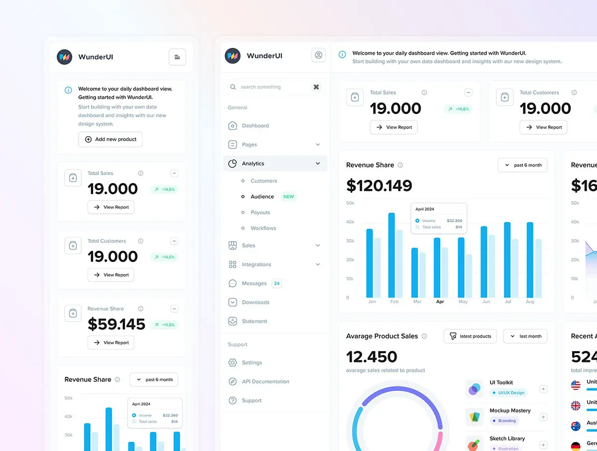 WunderUI – design system v. 2.0 500屏全套通用模块化响应式ui功能设计组件后台仪表盘模版素材
