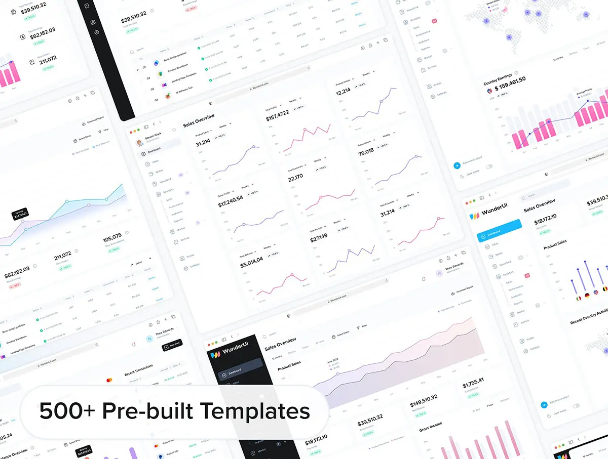 WunderUI – design system v. 2.0 500屏全套通用模块化响应式ui功能设计组件后台仪表盘模版素材