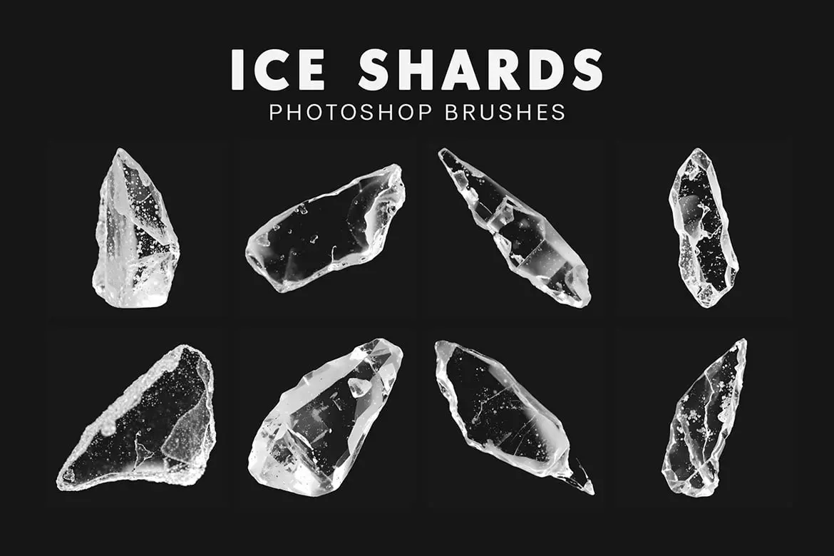 20 Ice Shards Brushes 20款高清逼真晶莹冰晶水晶玻璃碎块ps笔刷素材