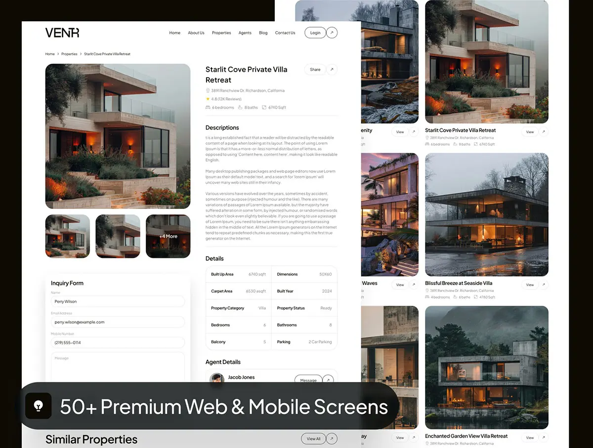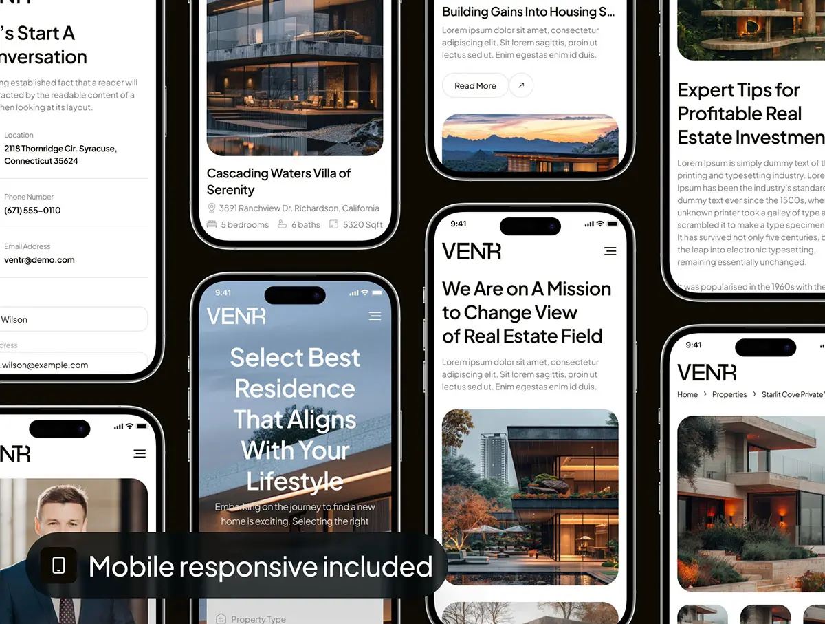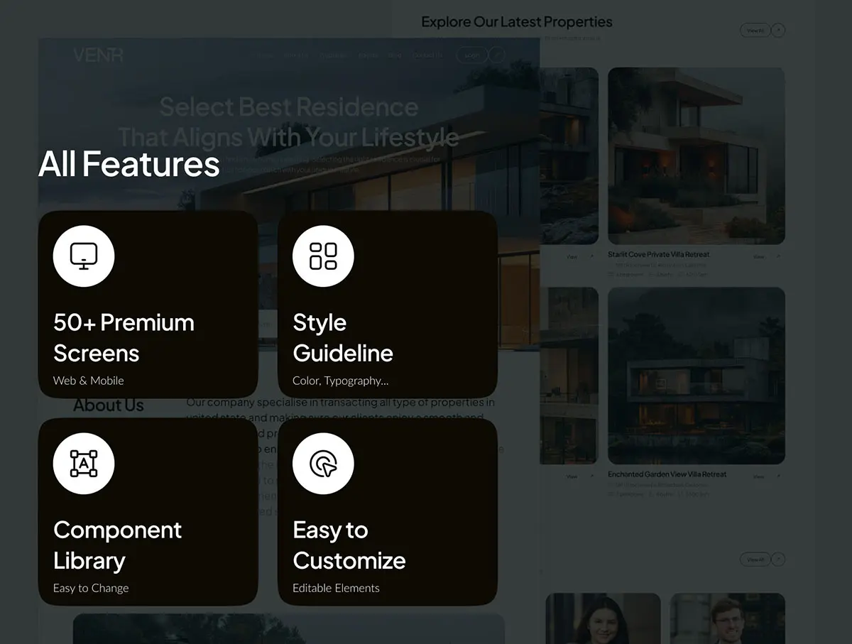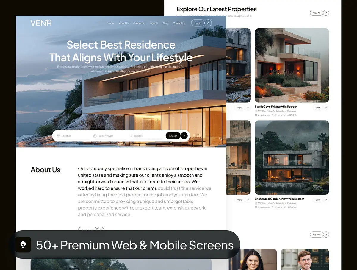 Ventr – Real Estate Website UI Kit 房地产官网房源展示交易响应式用户界面ui套件模板