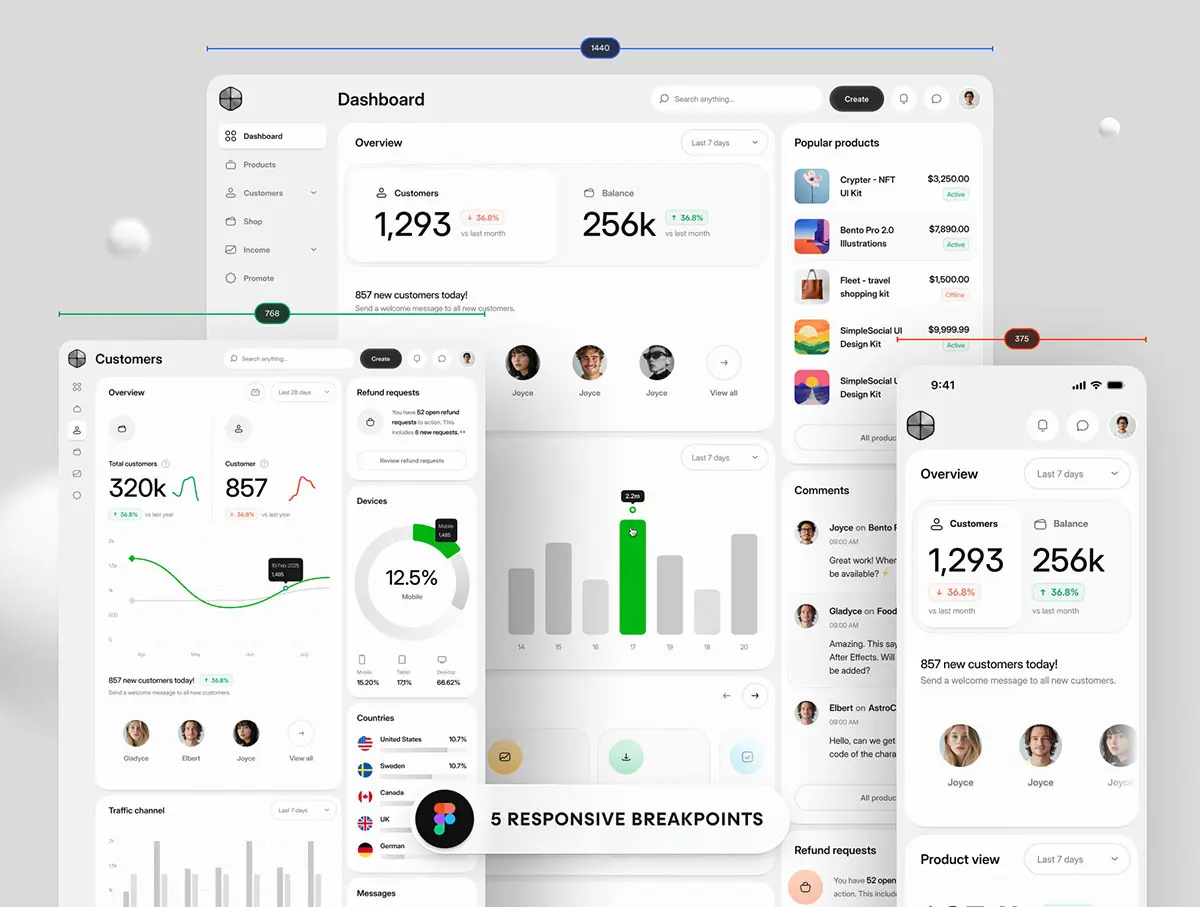 这个强大的软件包包括 490 个预制模板和 500 多个组件,所有模板都完全响应并使用 Figma 自动布局构建,可实现无缝定制。无论您是在构思还是原型设计,Core 2.0 都能让设计人员通过拖放和混合各个部分来在几分钟内创建仪表板。HTML、React 和 Tailwind 4 中的编码版本即将作为免费更新推出,专注于干净的设计和可用于开发的文件!